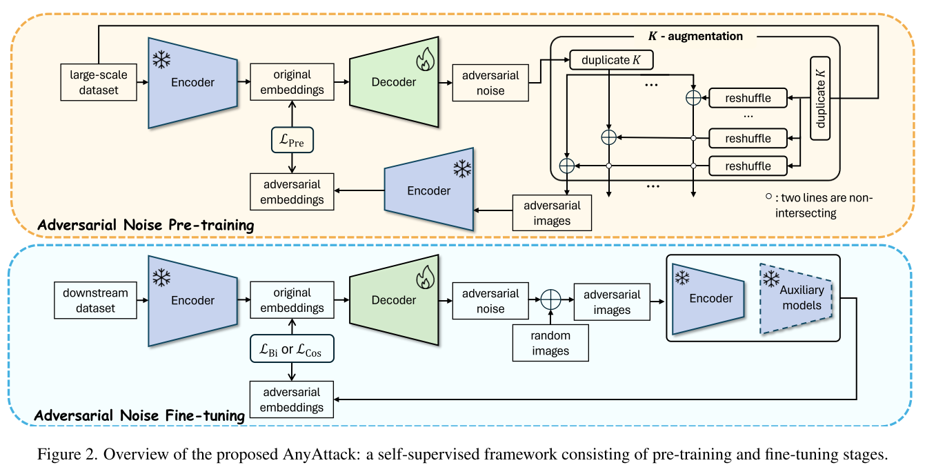 AnyAttack借鉴了大语言模型的成功经验,首次将"预训练-微调"范式应用于对抗攻击: