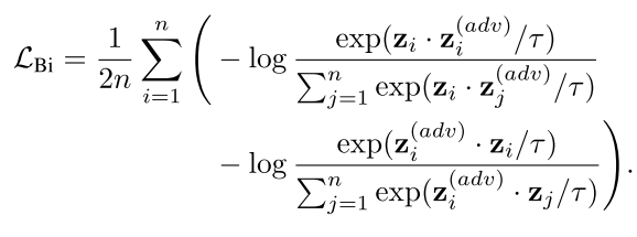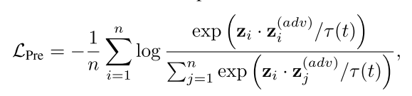 这个损失函数最大化正样本对(原始图像和对应的对抗图像)的相似度,同时最小化负样本对的相似度。