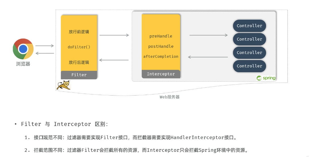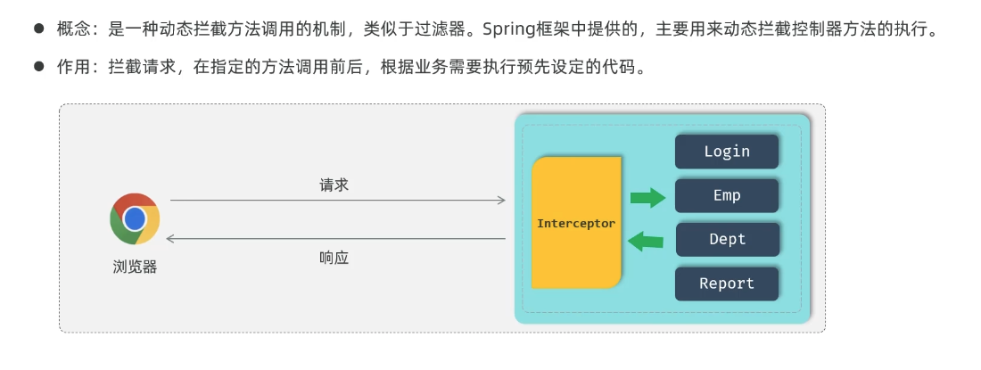 public class DemoInterceptor implements HandlerInterceptor {@Overridepublic boolean preHandle(HttpServletRequest request, HttpServletResponse response, Object handler) throws Exception {log.info("preHandle");return true;}@Overridepublic void postHandle(HttpServletRequest request, HttpServletResponse response, Object handler, ModelAndView modelAndView) throws Exception {log.info("postHandle");}//视图渲染之后执行@Overridepublic void afterCompletion(HttpServletRequest request, HttpServletResponse response, Object handler, Exception ex) throws Exception {HandlerInterceptor.super.afterCompletion(request, response, handler, ex);}