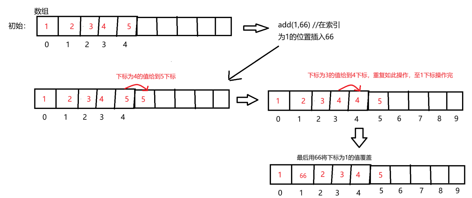 当我们使用add()进行插入时,会出现以下请况;添加元素---》usedSize++