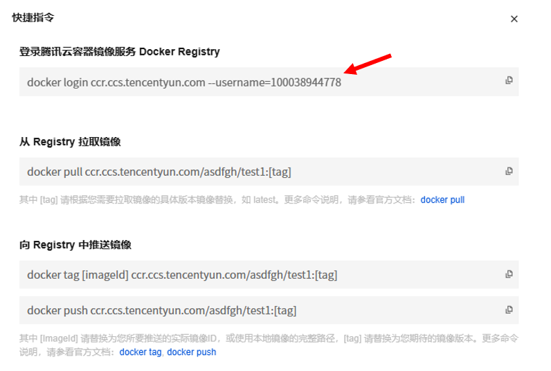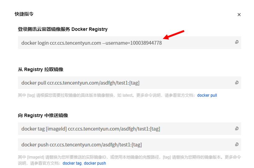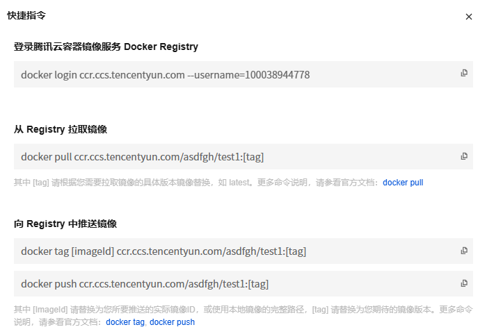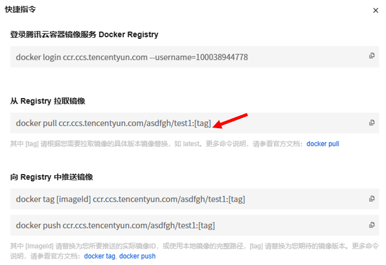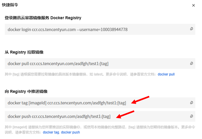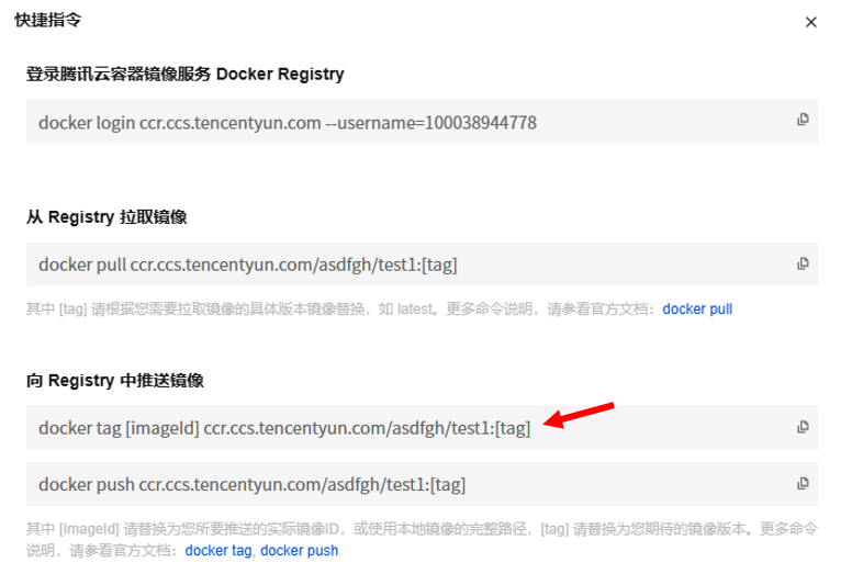 docker push ccr.ccs.tencentyun.com/asdfgh/test1:[tag]