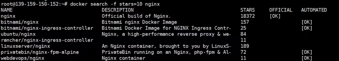 - stars=10 的意思是:只显示收藏数大于等于 10 的镜像。这样可以过滤掉那些非常冷门或可能无人维护的镜像。