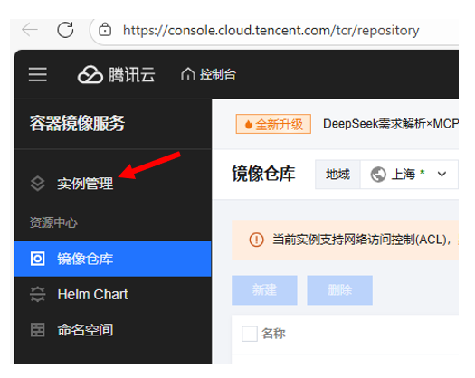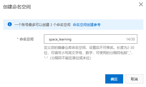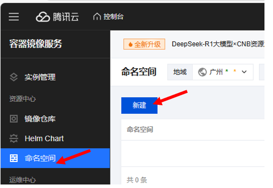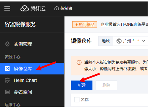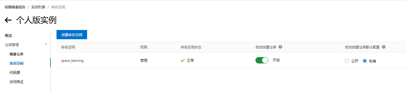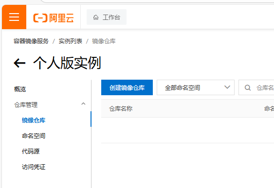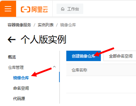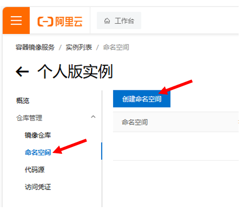 同样的,我们需要先创建命名空间,然后才能创建镜像仓库