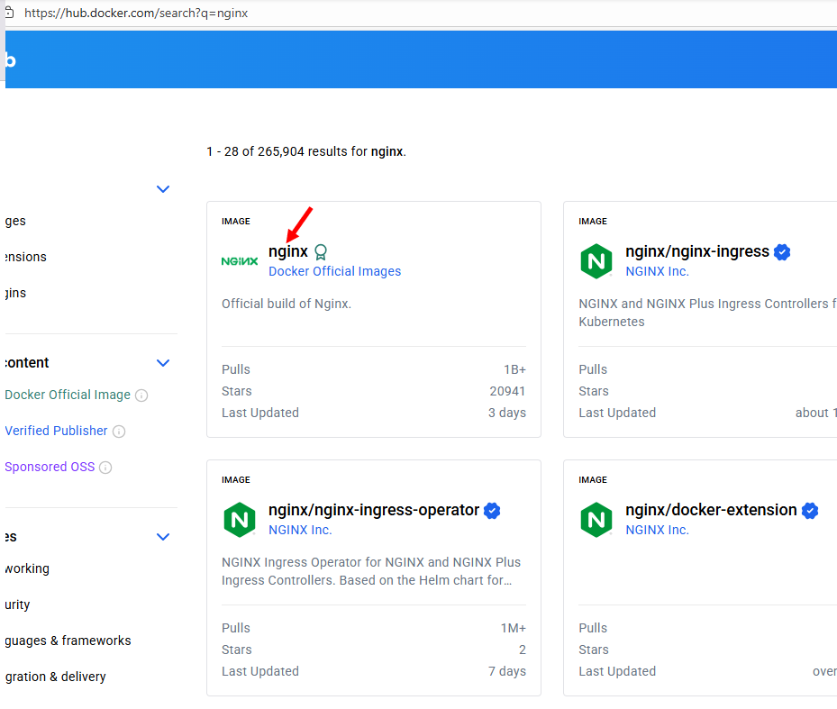 TERM:这是命令中唯一必需的部分。它就是你要搜索的关键词。比如你想找和 nginx 相关的镜像,这里就填 nginx。
