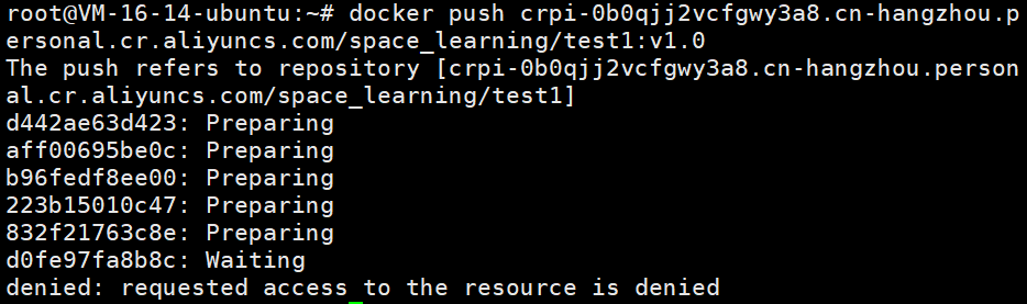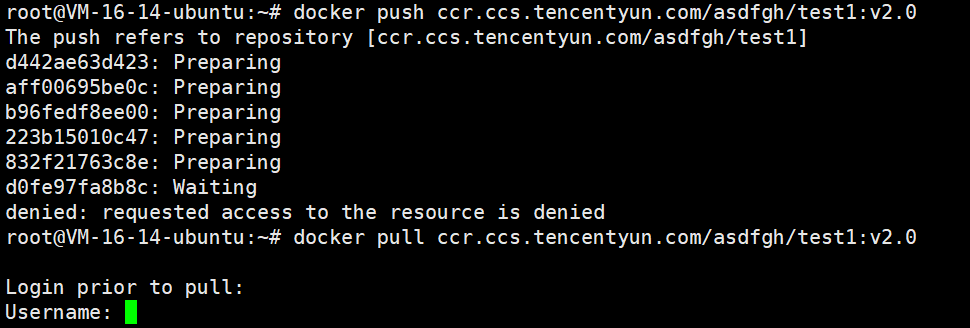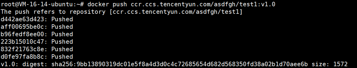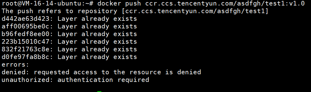 docker push ccr.ccs.tencentyun.com/asdfgh/test1:v1.0
