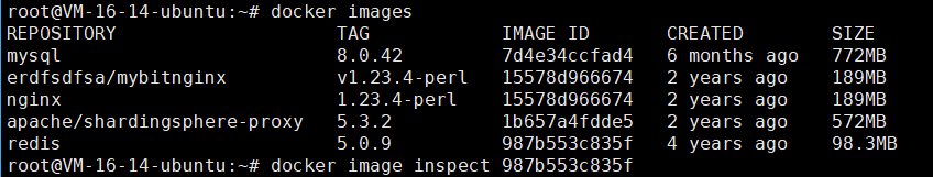 [IMAGE...] 中的 ... 表示你可以同时查看多个镜像的信息,只需用空格隔开。例如:docker image inspect nginx:latest redis:alpine