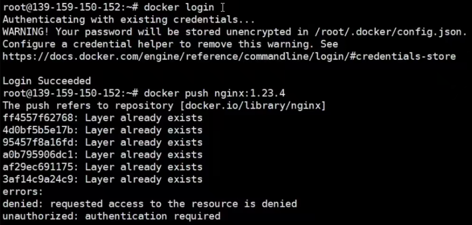 对于私有镜像仓库而言,如果我们退出登陆,那么我们不能进行任何pull和push操作。