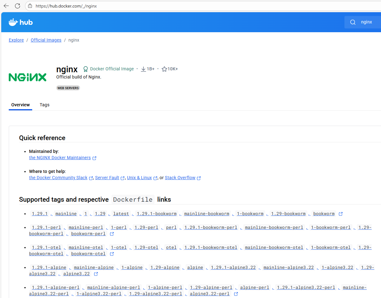 - 默认情况:描述可能显示为 Official build of Nginx...