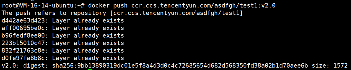 docker push ccr.ccs.tencentyun.com/asdfgh/test1:v2.0