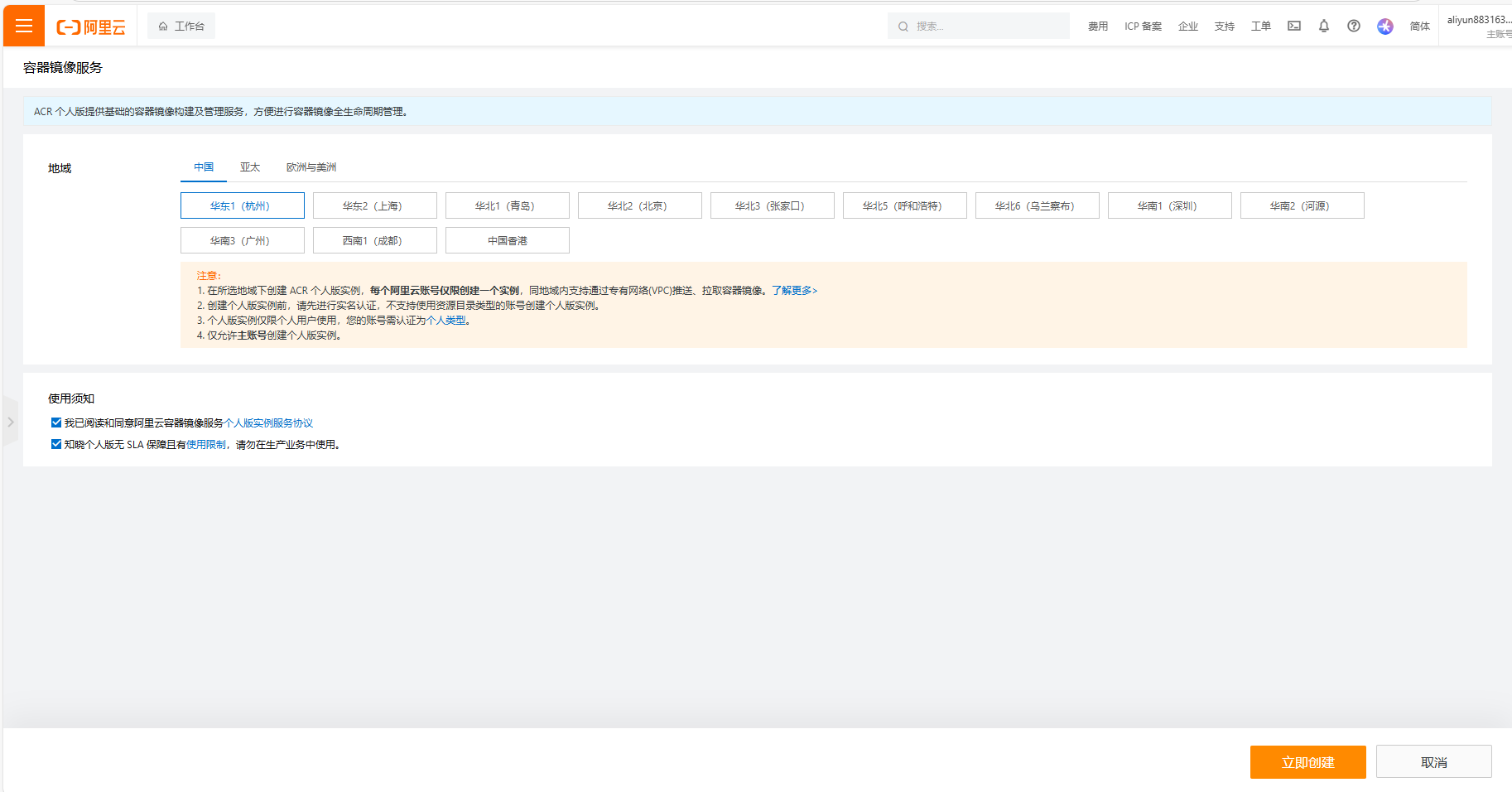 随便选一个地方,然后我们点击立即创建,创建好了就跳转到下面这个界面