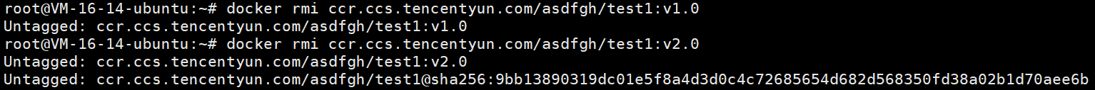 docker rmi ccr.ccs.tencentyun.com/asdfgh/test1:v1.0