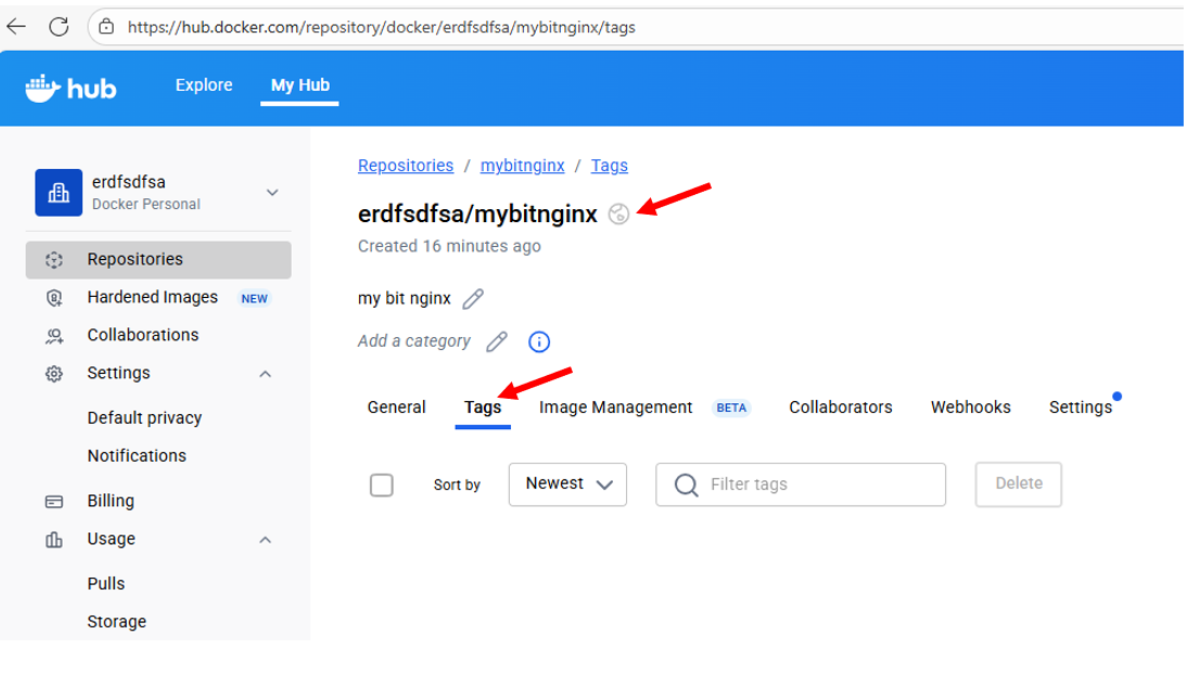 myregistry.com/myubuntu 22.04 4e2eef34f76a 2 weeks ago 77.8MB
