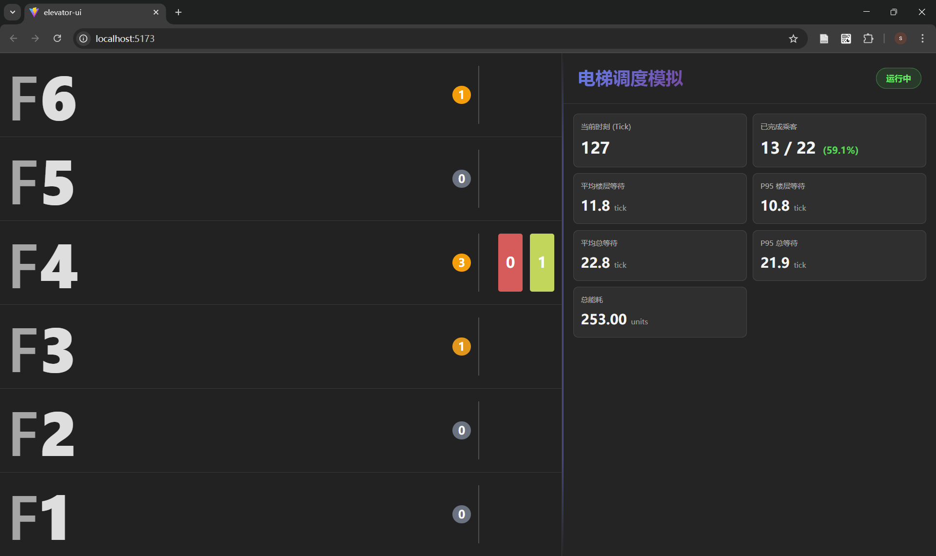 - View(视图):Vue 组件负责所有呈现逻辑(可视化、电梯面板、流量表格等)。