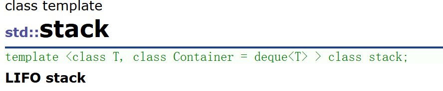 - 我们实现stack的时候要使用类模板来进行实现,T为stack存储的数据类型,模板参数列表中的模板参数还可以有缺省值,这个缺省值与函数的缺省值(函数的缺省值的是数据)不同的是模板参数的缺省值是类型,函数的缺省值是对象,默认情况下我们采用deque作为stack的底层容器