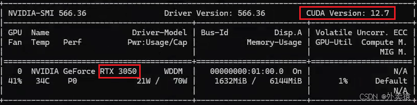 以RTX3050 GPU为例,通过命令行nvidia-smi,查询GPU型号以及驱动版本。