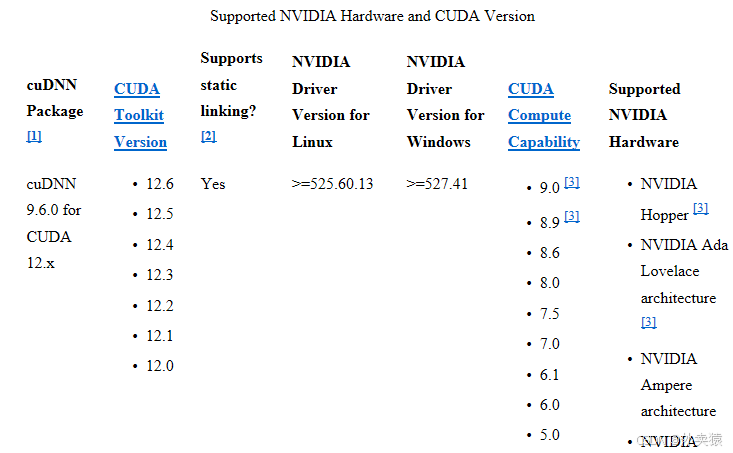 选择cudnn版本时,可参考下官网介绍的Support Matrix: