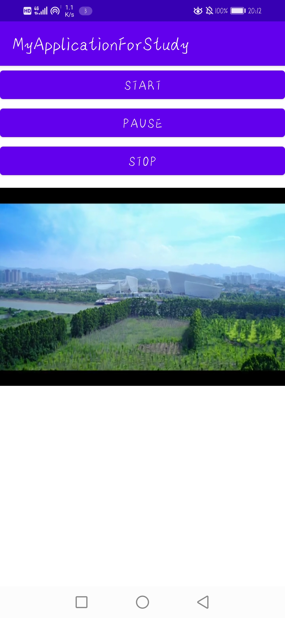 public class MediaPlayerActivity extends AppCompatActivity implements View.OnClickListener, SurfaceHolder.Callback {private Button button_start, button_pause, button_stop;private SurfaceView surfaceView;private MediaPlayer mediaPlayer_surface;private SurfaceHolder surfaceHolder;@Overrideprotected void onCreate(Bundle savedInstanceState) {super.onCreate(savedInstanceState);setContentView(R.layout.activity_media_player);button_start = findViewById(R.id.button_start);button_pause = findViewById(R.id.button_pause);button_stop = findViewById(R.id.button_stop);surfaceView = findViewById(R.id.surfaceView);button_start.setOnClickListener(this);button_pause.setOnClickListener(this);button_stop.setOnClickListener(this);surfaceHolder = surfaceView.getHolder();surfaceHolder.addCallback(this);}@Overridepublic void onClick(View view) {if (view.getId() == R.id.button_start) {mediaPlayer_surface.start();} else if (view.getId() == R.id.button_pause) {mediaPlayer_surface.pause();} else if (view.getId() == R.id.button_stop) {mediaPlayer_surface.stop();}}@Overridepublic void surfaceCreated(@NonNull SurfaceHolder surfaceHolder) {mediaPlayer_surface = MediaPlayer.create(this, R.raw.hby);mediaPlayer_surface.setDisplay(surfaceHolder);}@Overridepublic void surfaceChanged(@NonNull SurfaceHolder surfaceHolder, int i, int i1, int i2) {}@Overridepublic void surfaceDestroyed(@NonNull SurfaceHolder surfaceHolder) {}