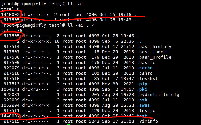 我们cd .. cd . 的操作就是基于硬链接,inode一致。