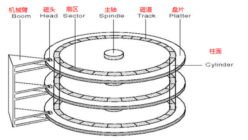 磁头是一面一个磁头,所以企业用的磁盘,可以看到很多磁头分层放着。