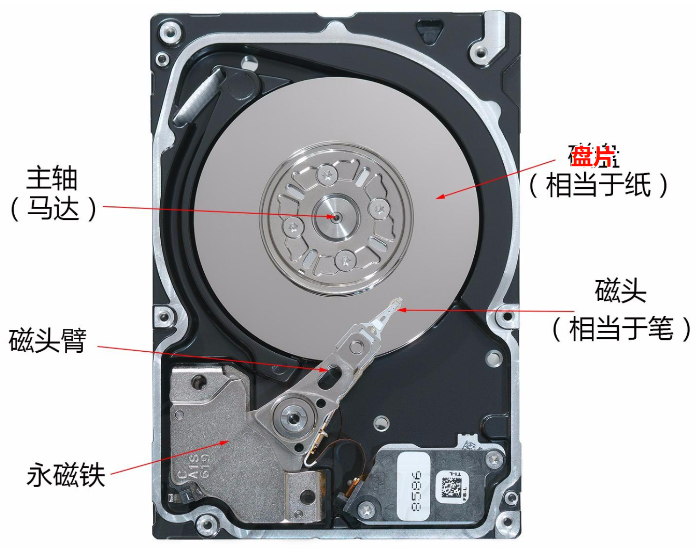 而磁盘,可以想象是无数个磁铁构成,所谓的01,就是磁铁南极北极,数据写入,其实就是通过磁头的放电,改变南极北极朝向。而磁铁的磁性是可以保持很久的,这也是为什么说磁盘可以永久存储。
