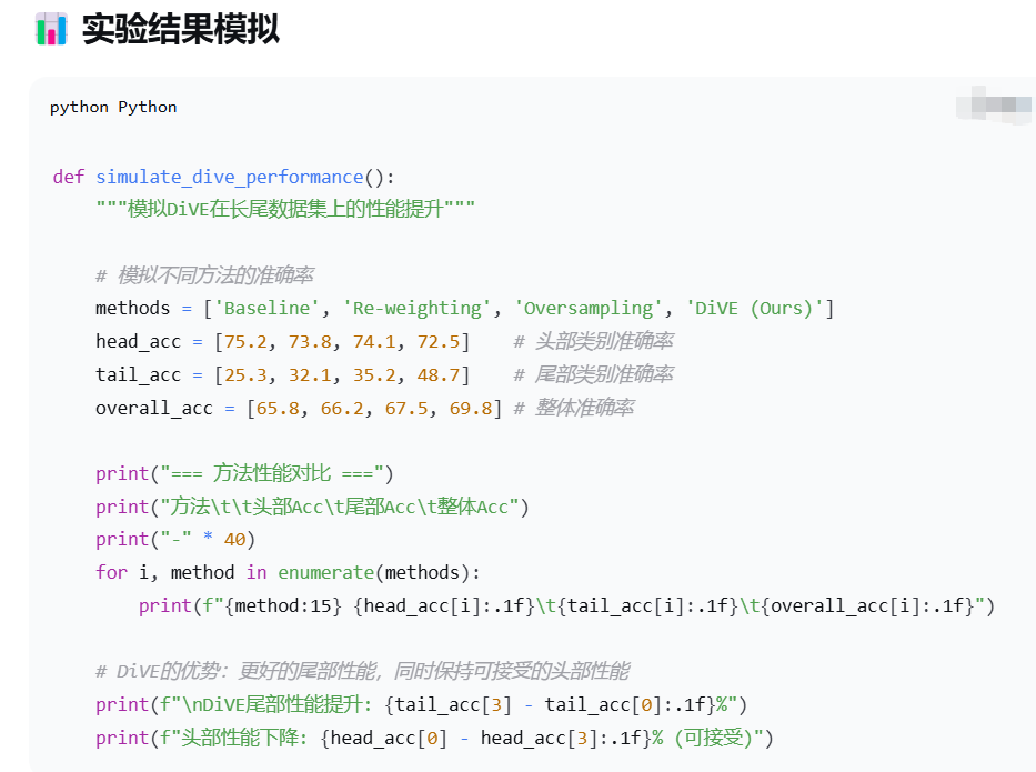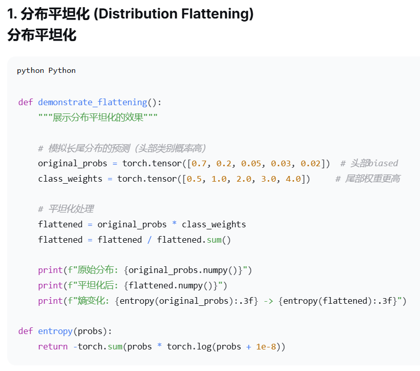 | 分布调整 | 明确调整虚拟样本分布使其更平坦,降低头部类别权重,提升尾部类别影响-1。 | 使虚拟样本分布比原始输入分布更平坦-1。 | 长尾数据集中头部类别主导模型训练。 |