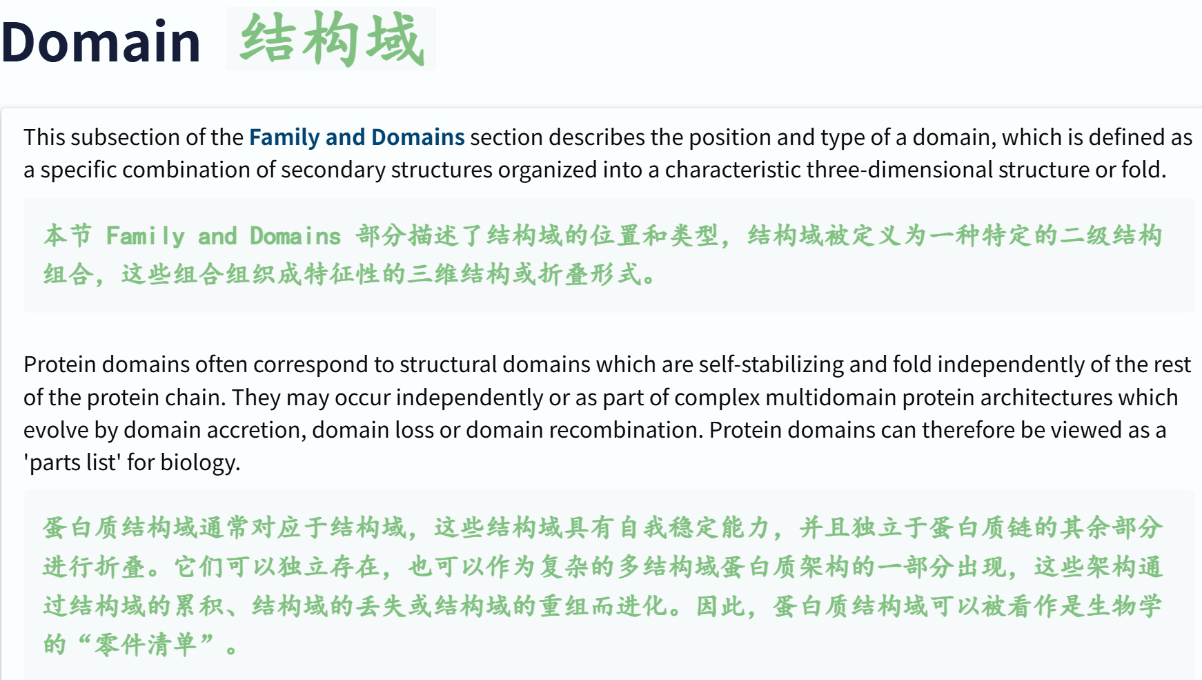 # Family and domains 偏向于结构域