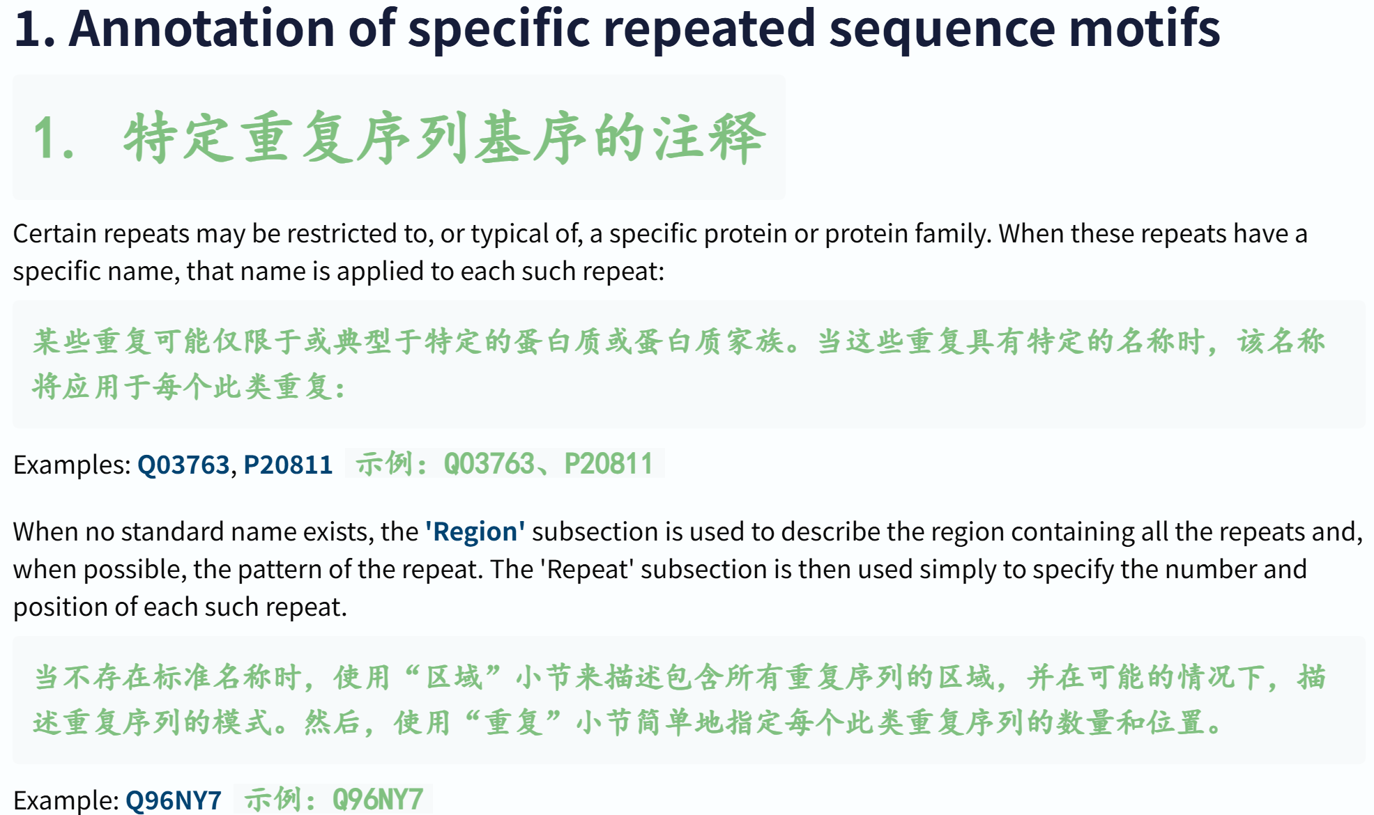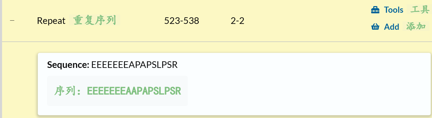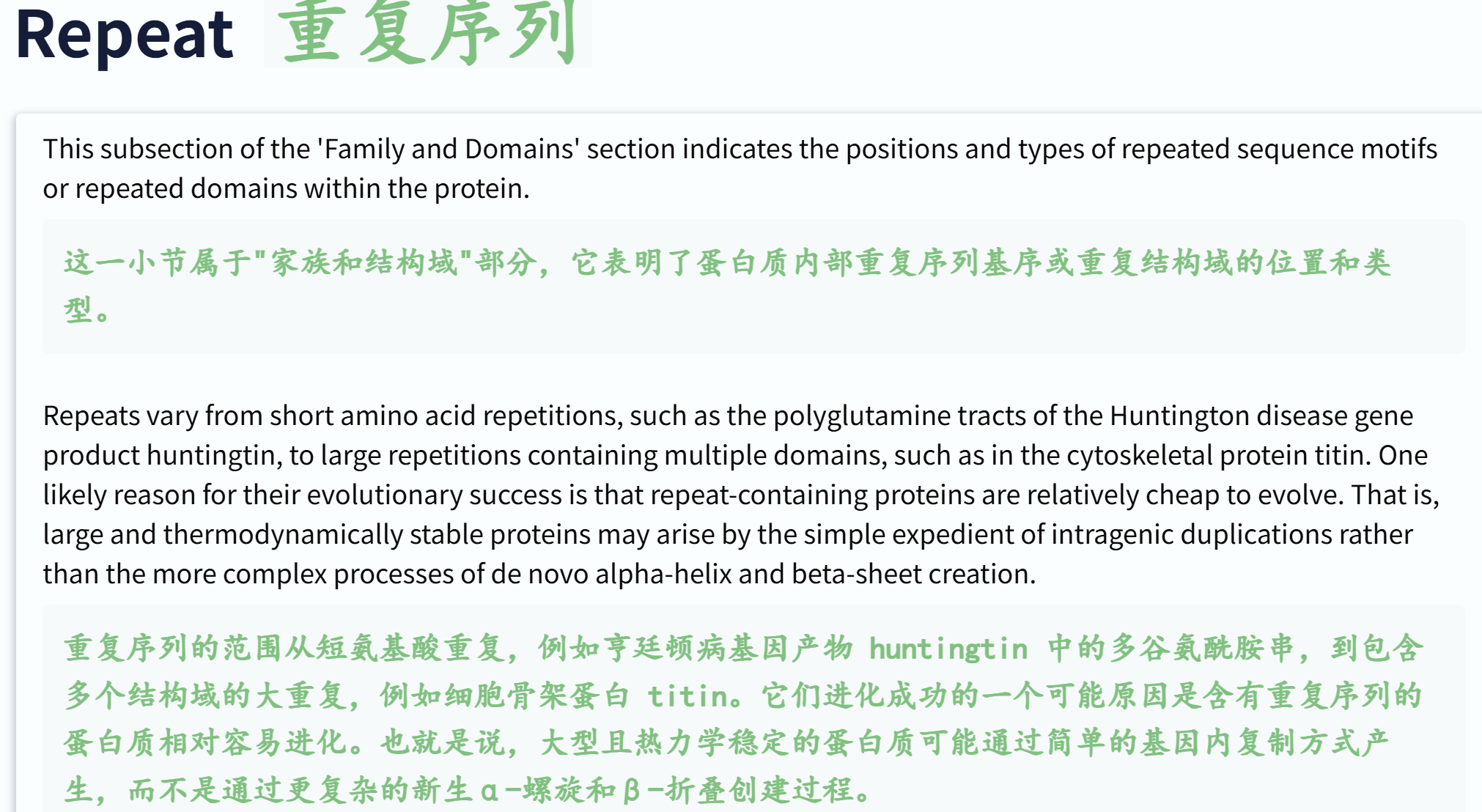 'Repeat' # 蛋白质内部重复序列基序或重复结构域的位置和类型 ✅