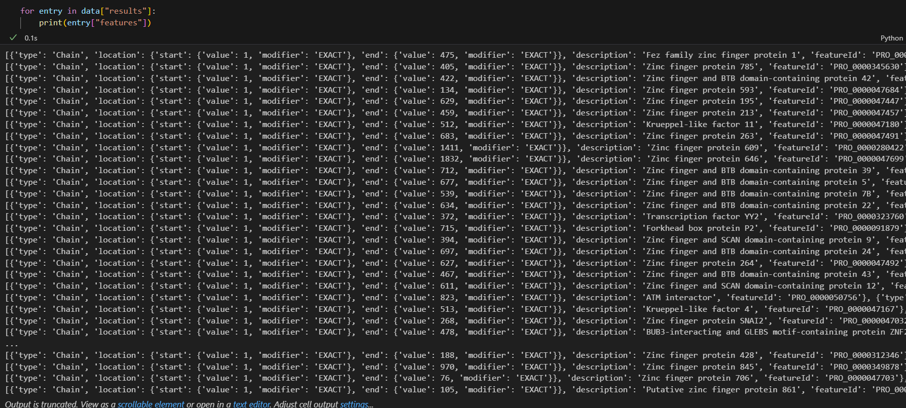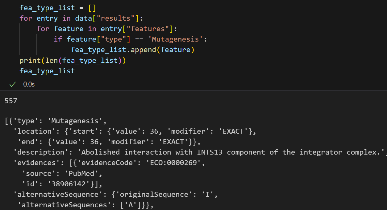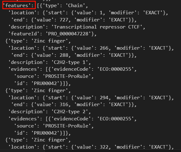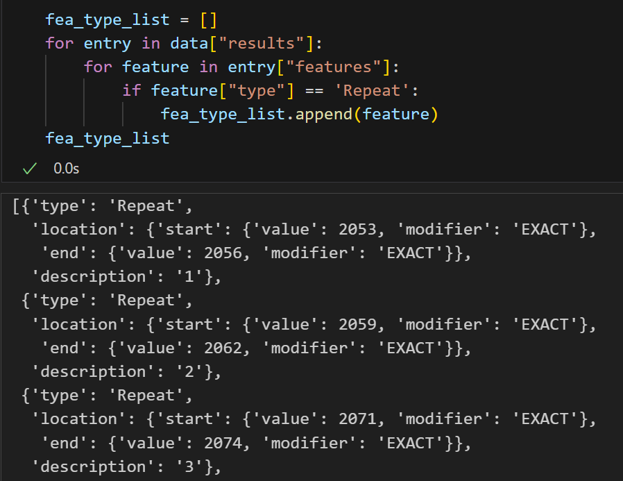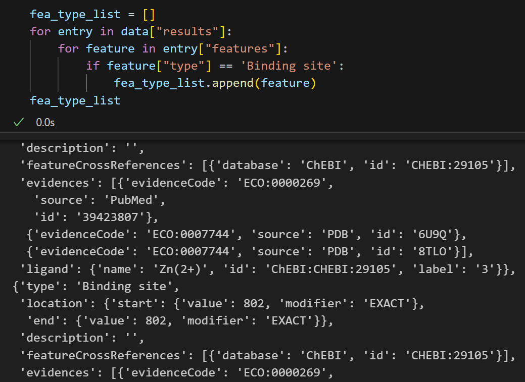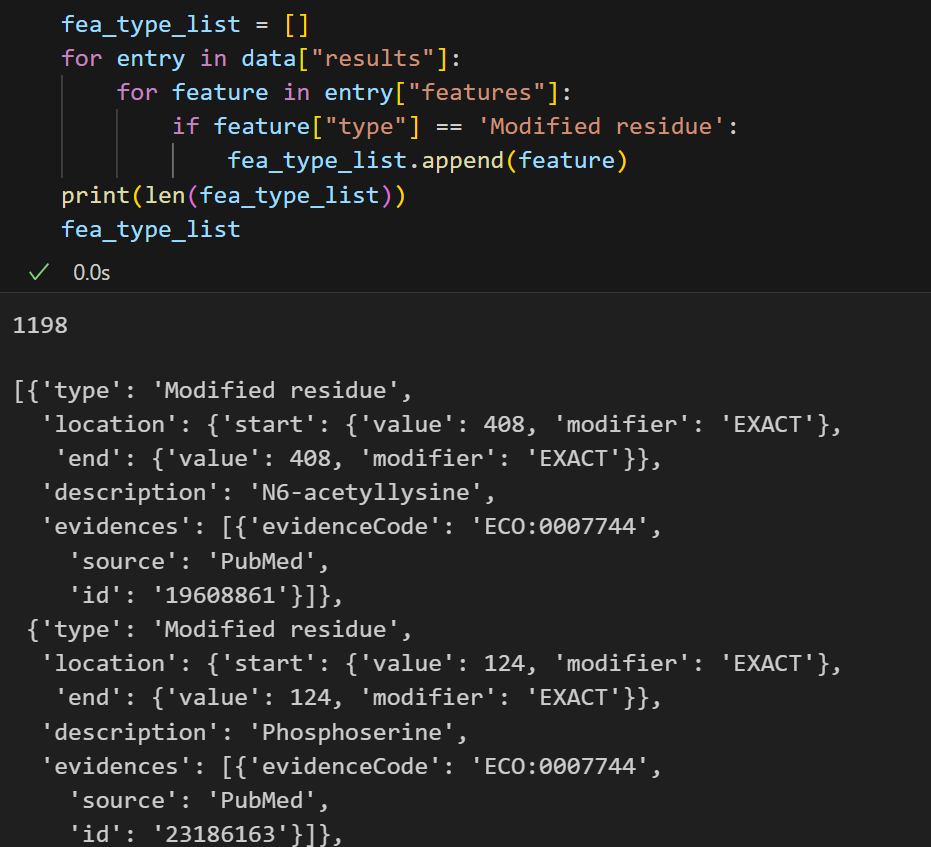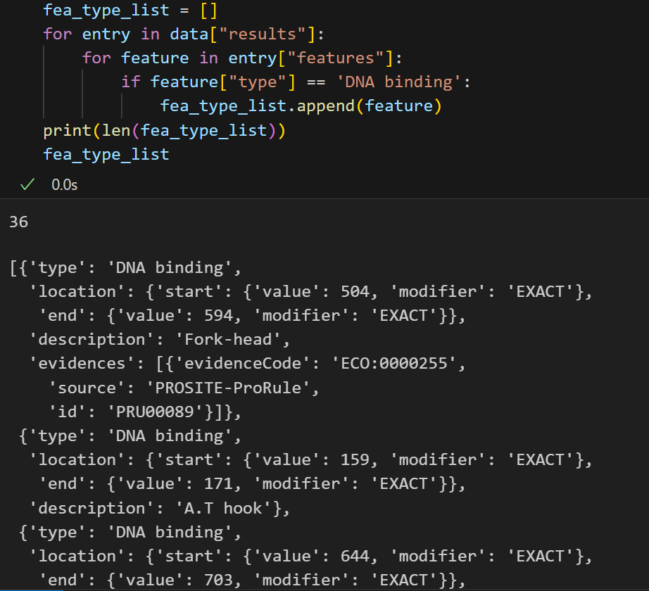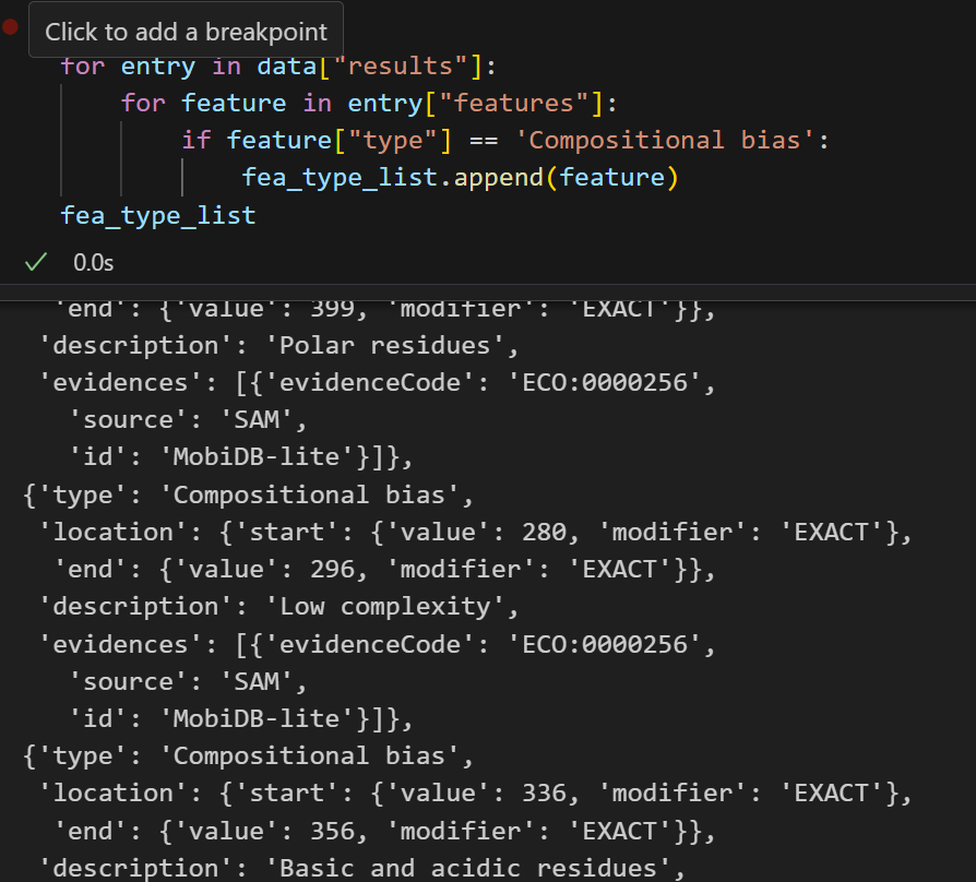 for entry in data["results"]:for feature in entry["features"]:if feature["type"] == 'Coiled coil':fea_type_list.append(feature)