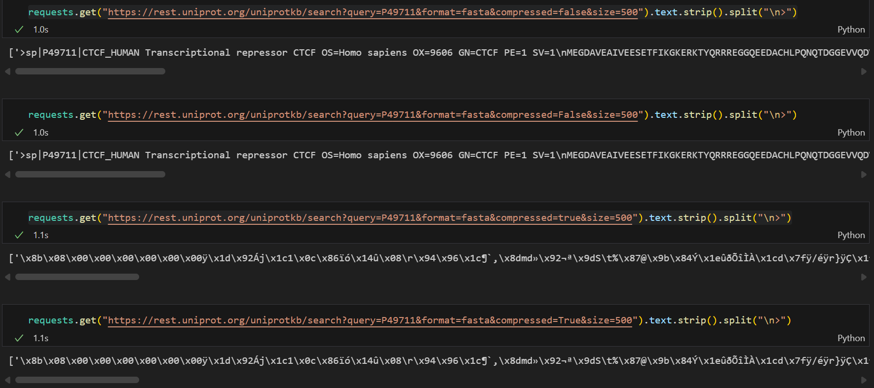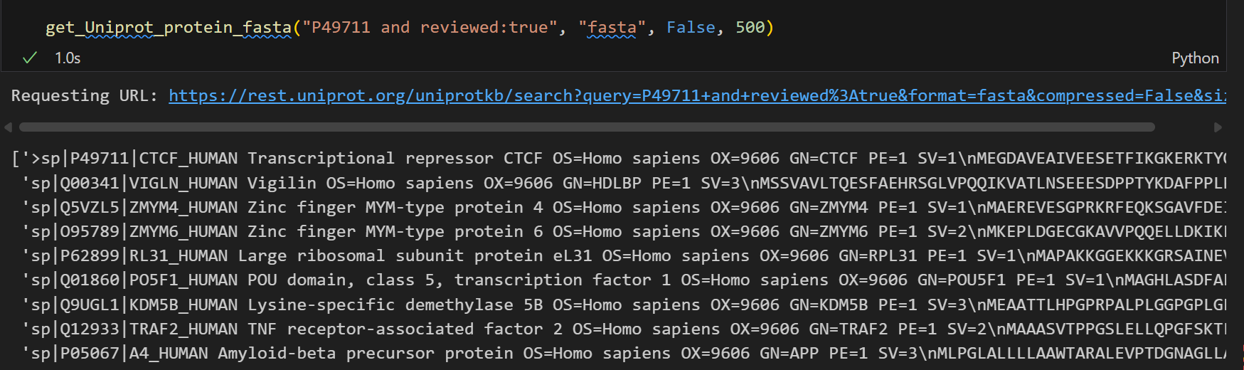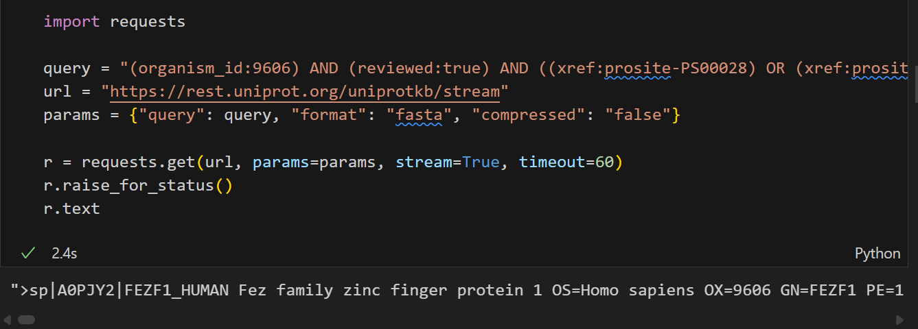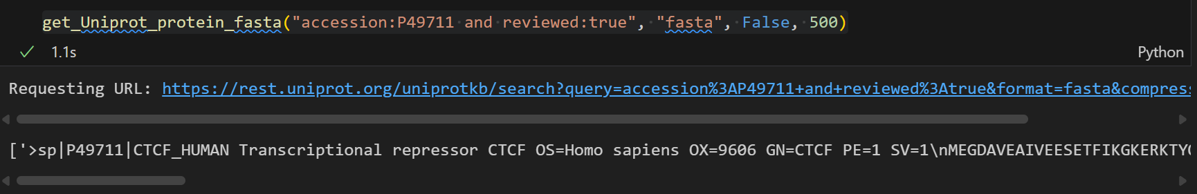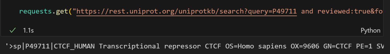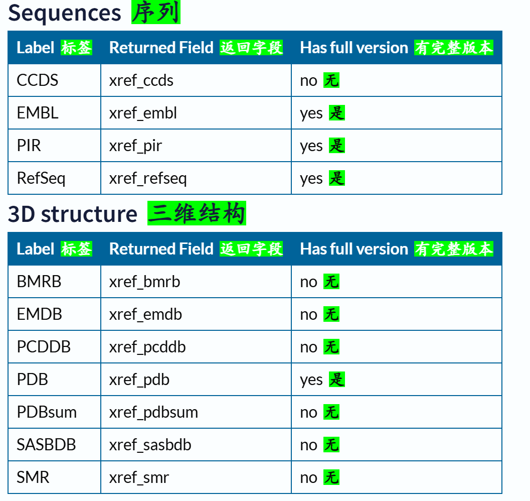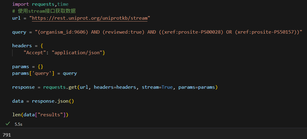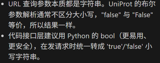 这里需要注意的是尽量使用Uniprot标识符来稳定访问,其他的访问并不一定稳定,比如说uniref,