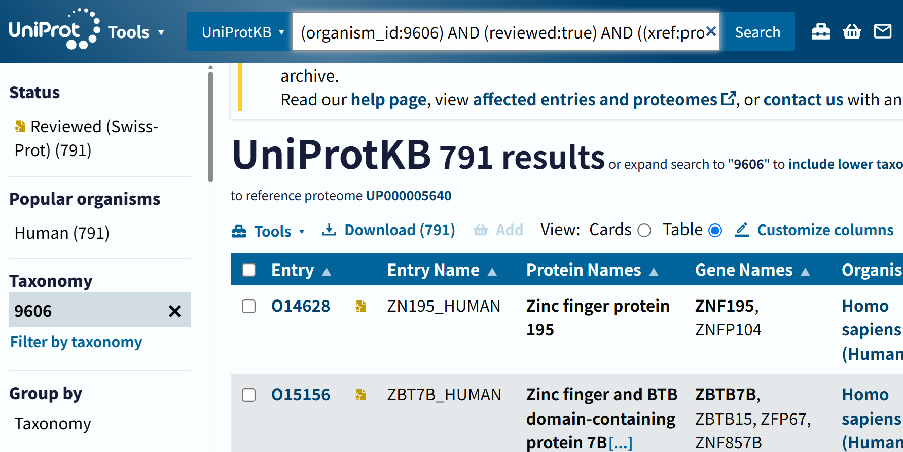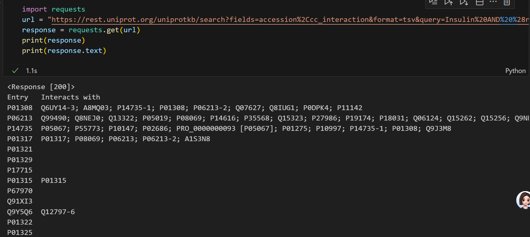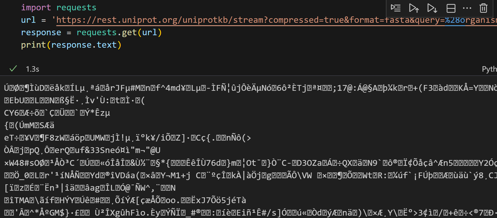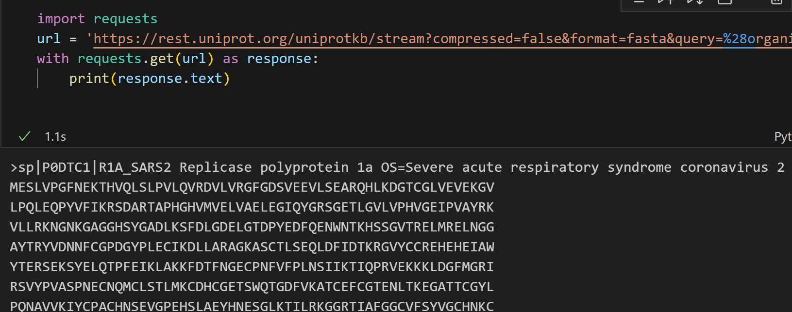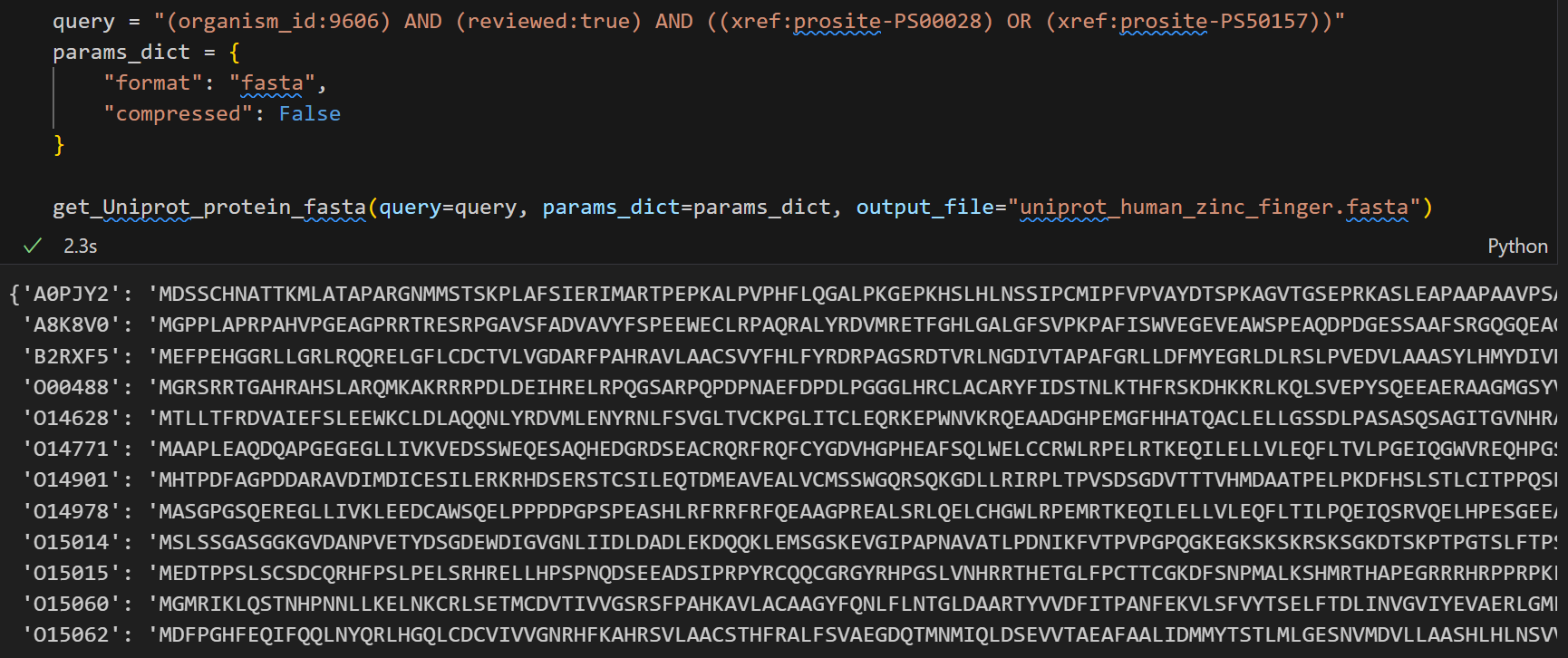 这里需要注意的是尽量使用Uniprot标识符来稳定访问,其他的访问并不一定稳定,比如说uniref,