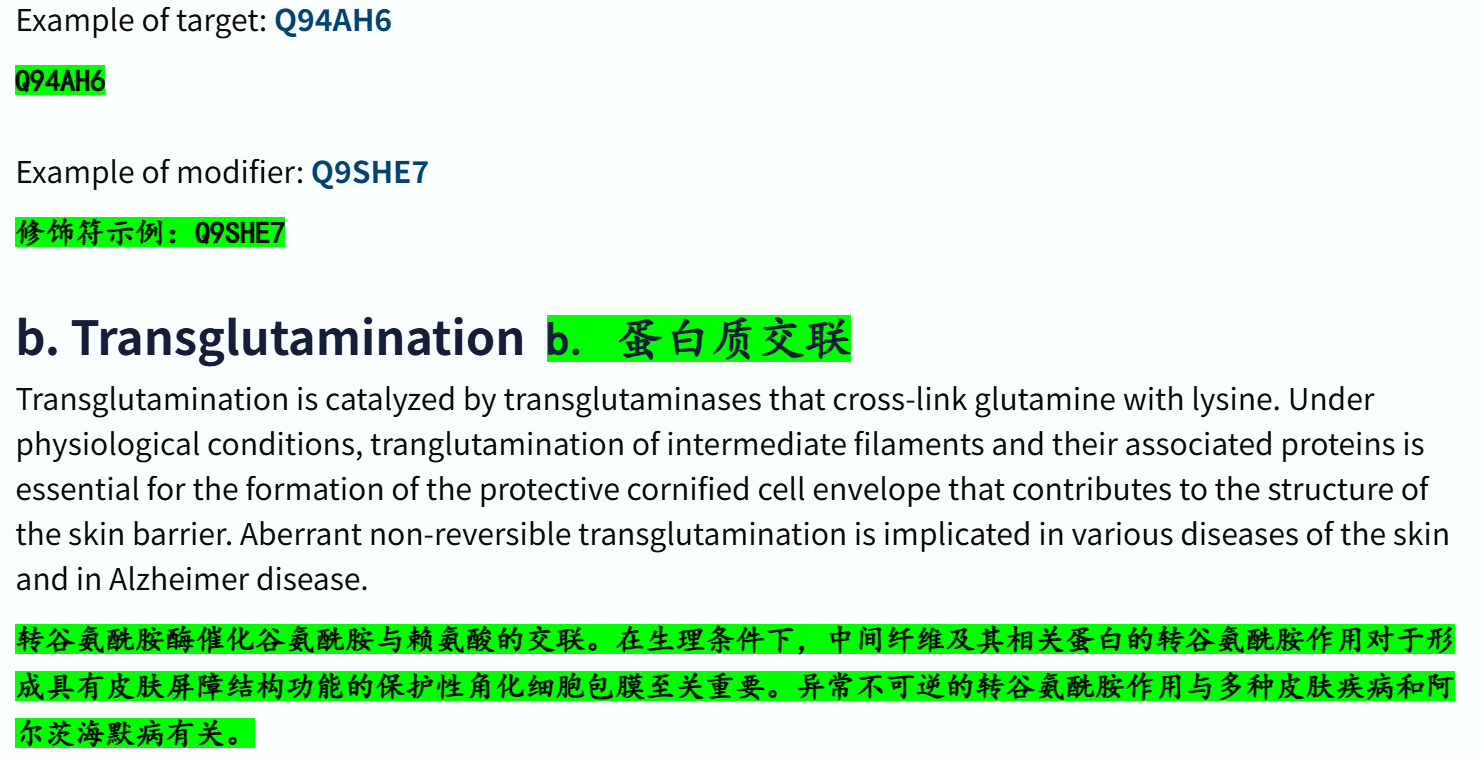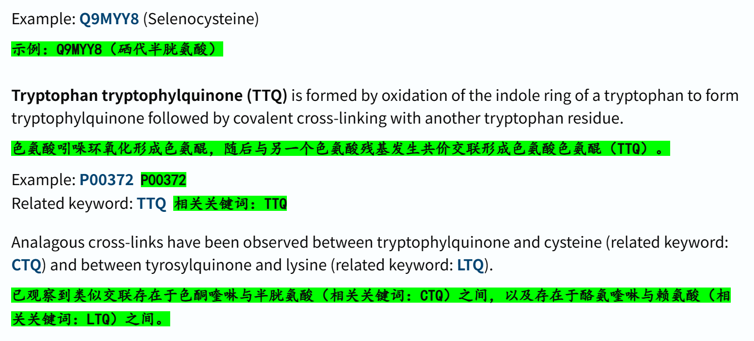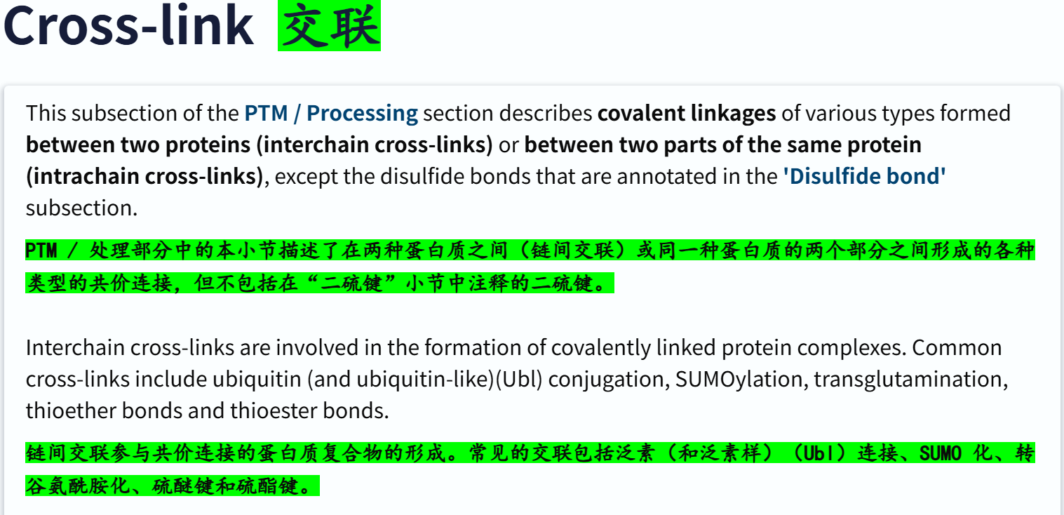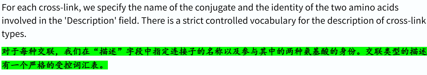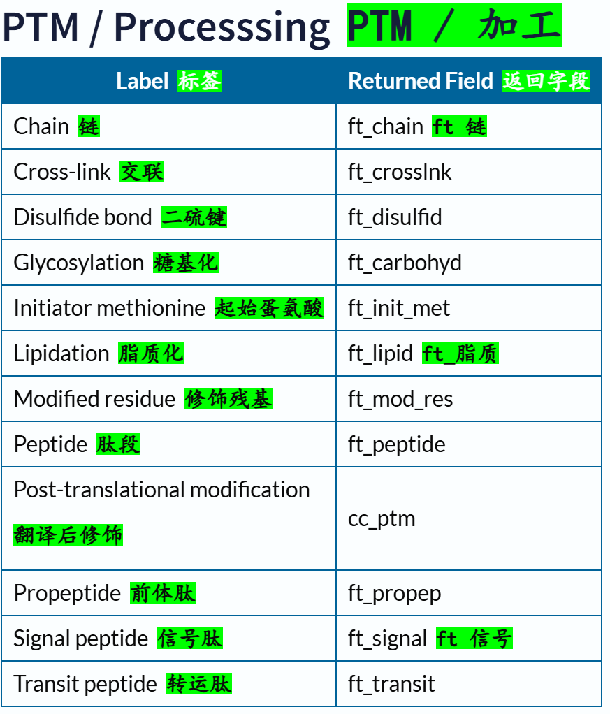 'Modified residue' # 除脂质、聚糖和蛋白质交联外,每种修饰残基的位置和类型 ✅👍