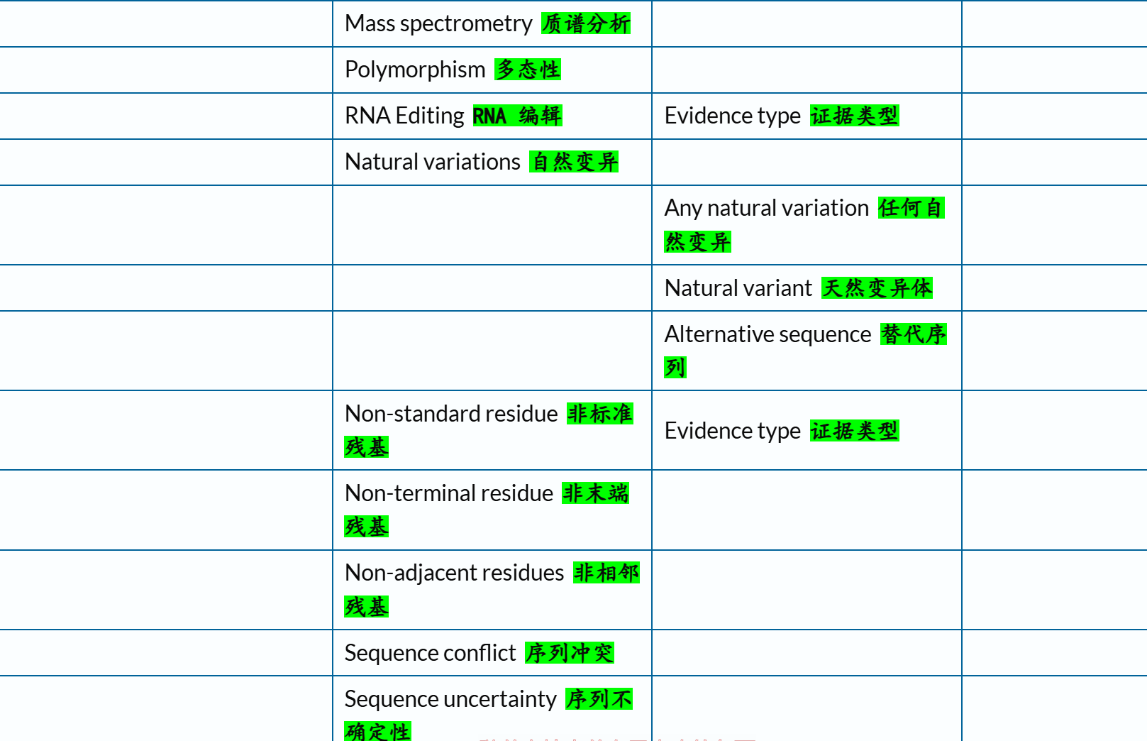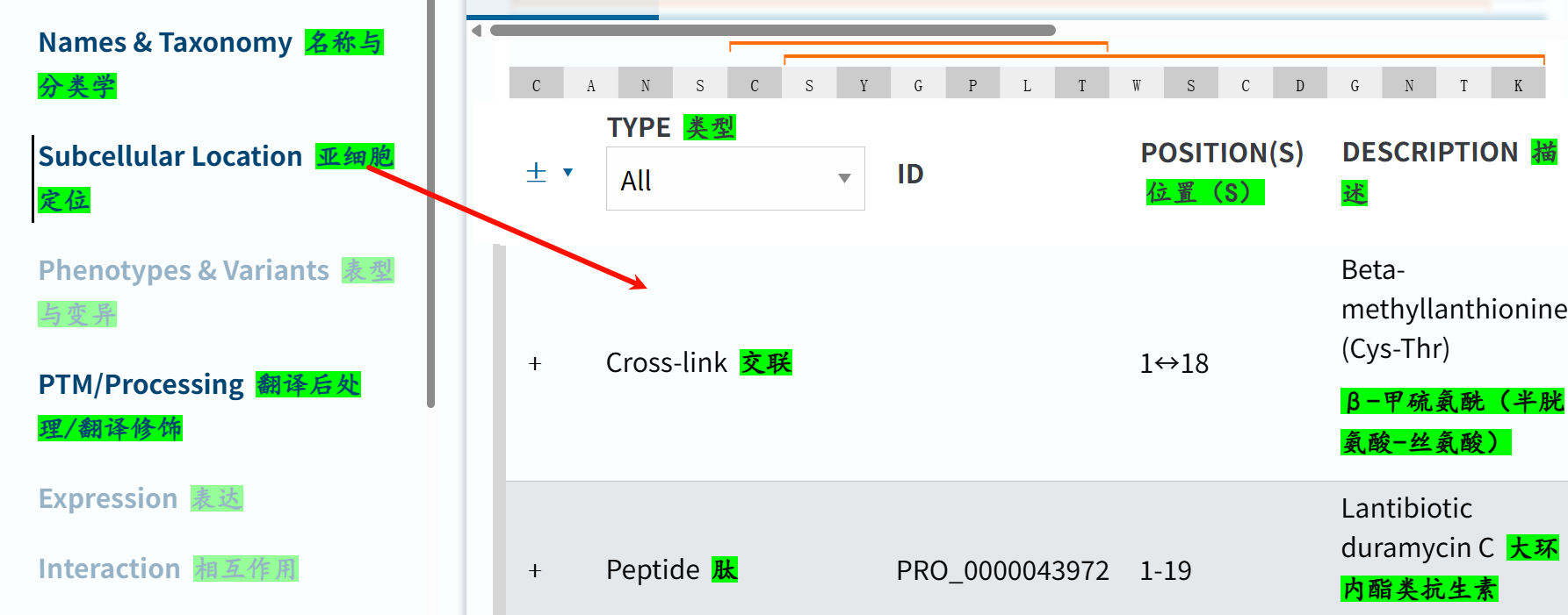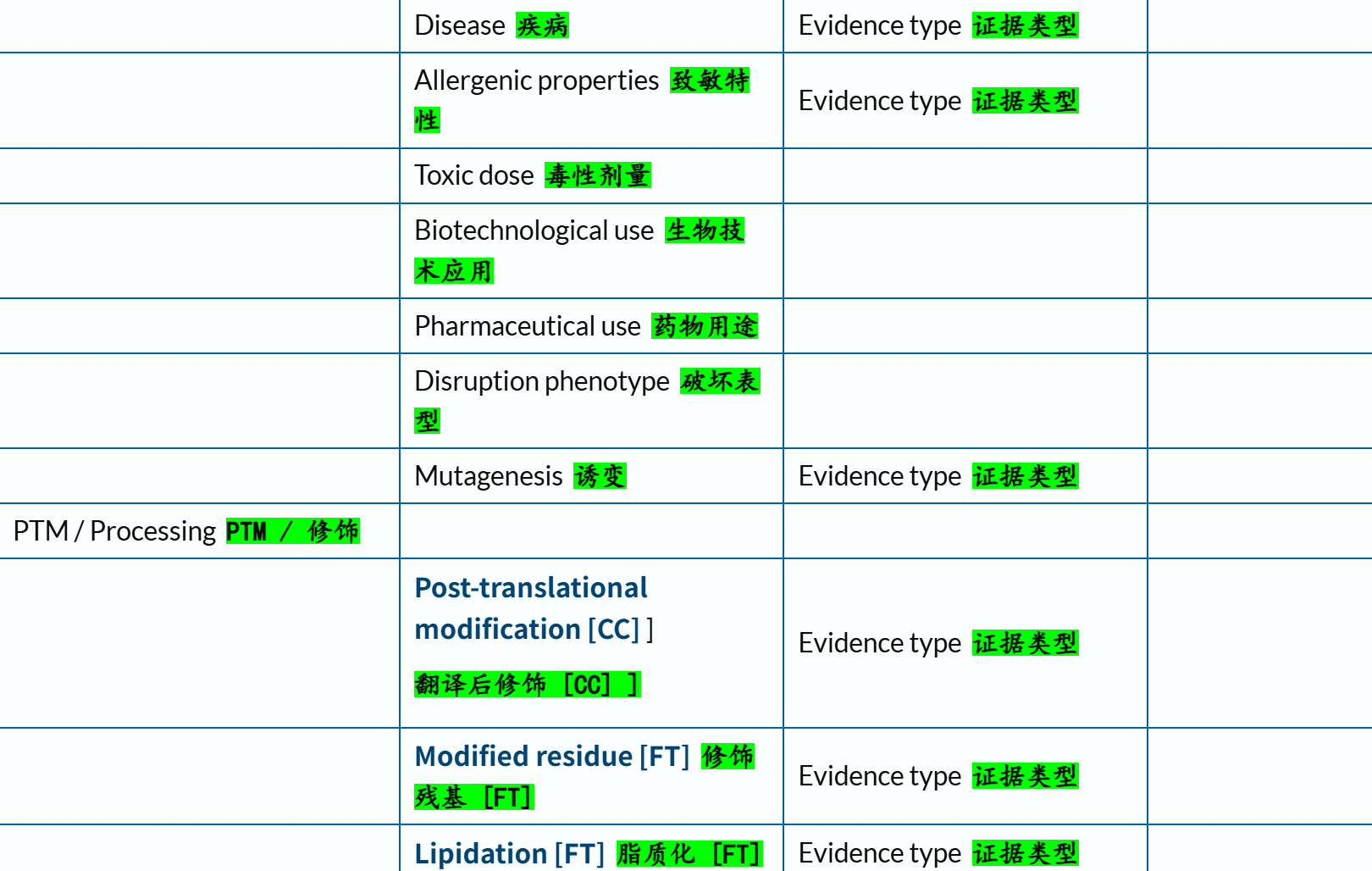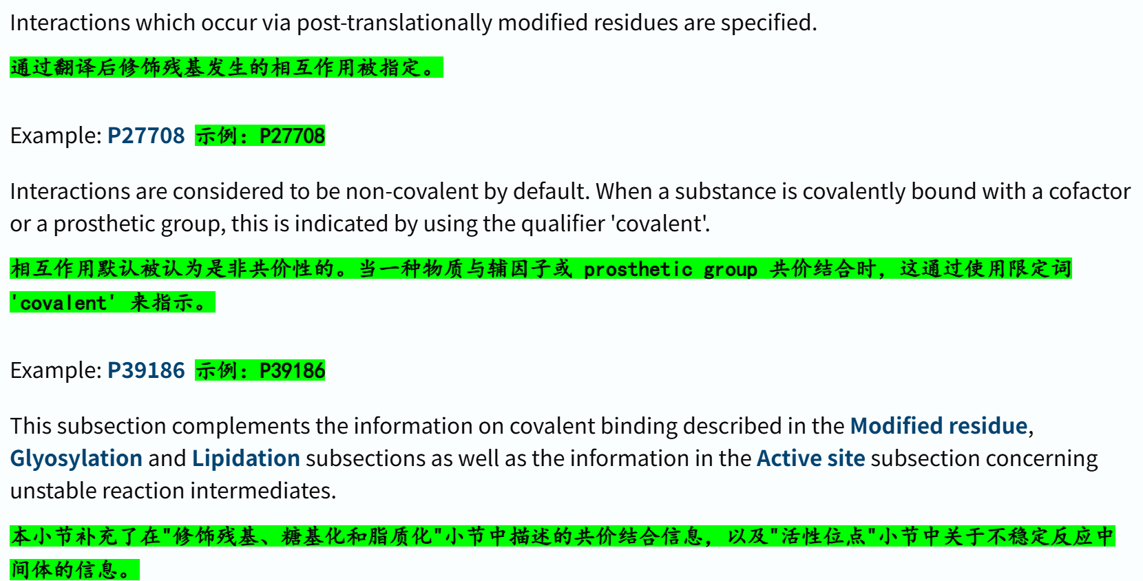 'Modified residue' # 除脂质、聚糖和蛋白质交联外,每种修饰残基的位置和类型 ✅👍