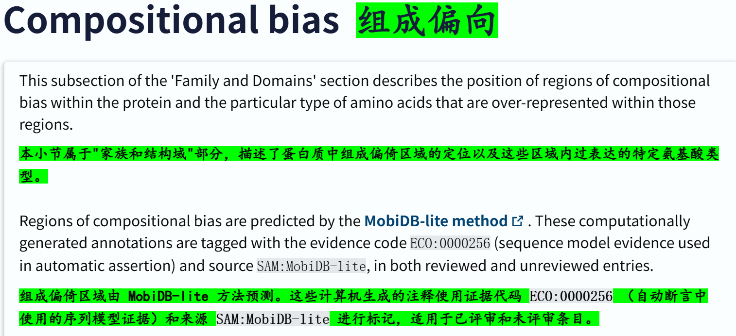 'Compositional bias' # 组成偏倚或过表达aa bias区域, 会和IDR概念重合 ✅👍