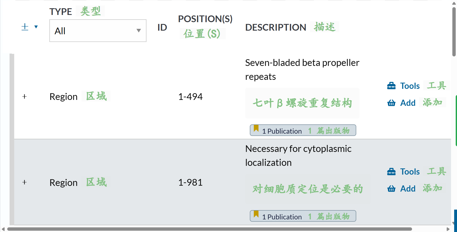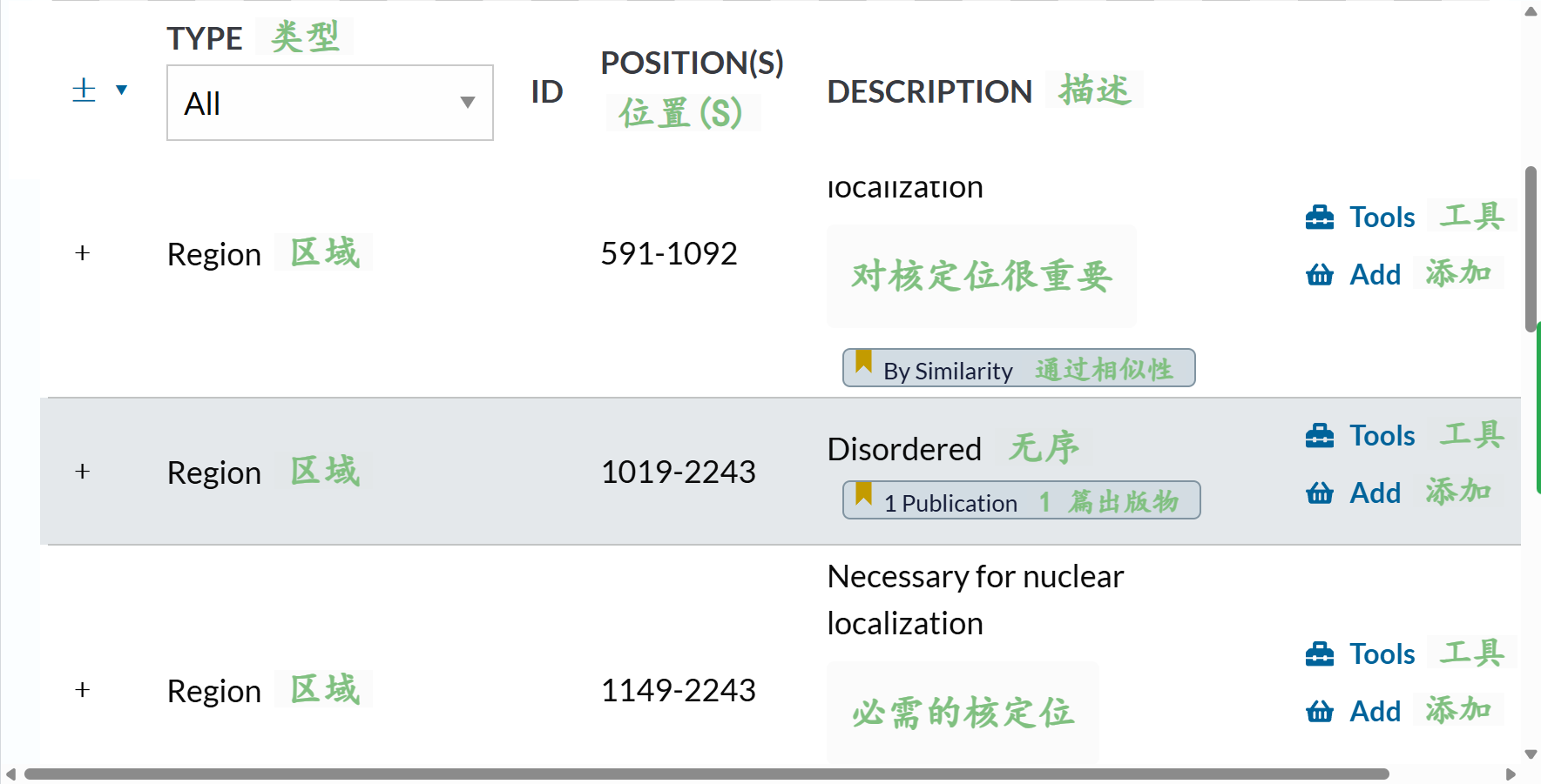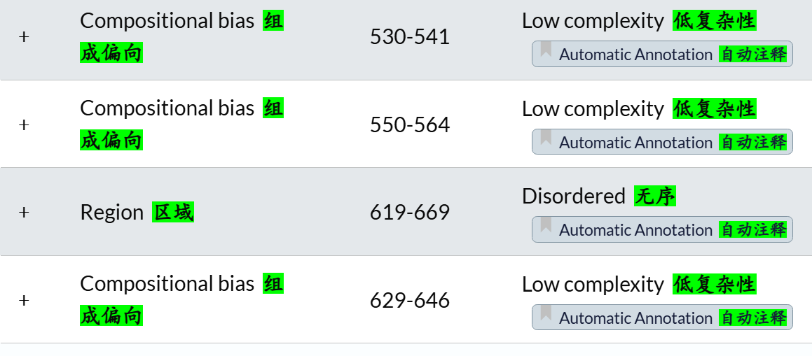 Region还可以,但是我看大多数都是描述disorder区域,但是我IDR区域完全可以用更好的工具来注释,所以这里Region可以保留,但是要排除掉’description’: 'Disordered’的项目