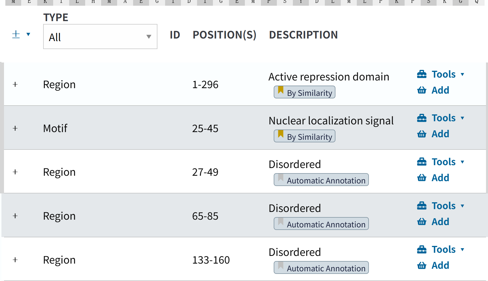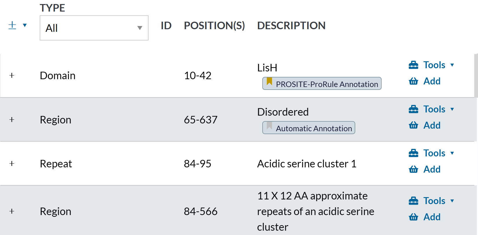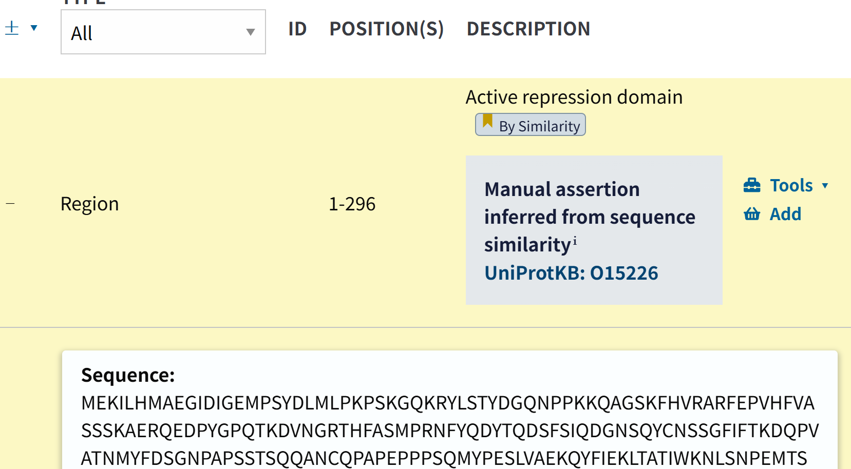 Region还可以,但是我看大多数都是描述disorder区域,但是我IDR区域完全可以用更好的工具来注释,所以这里Region可以保留,但是要排除掉’description’: 'Disordered’的项目