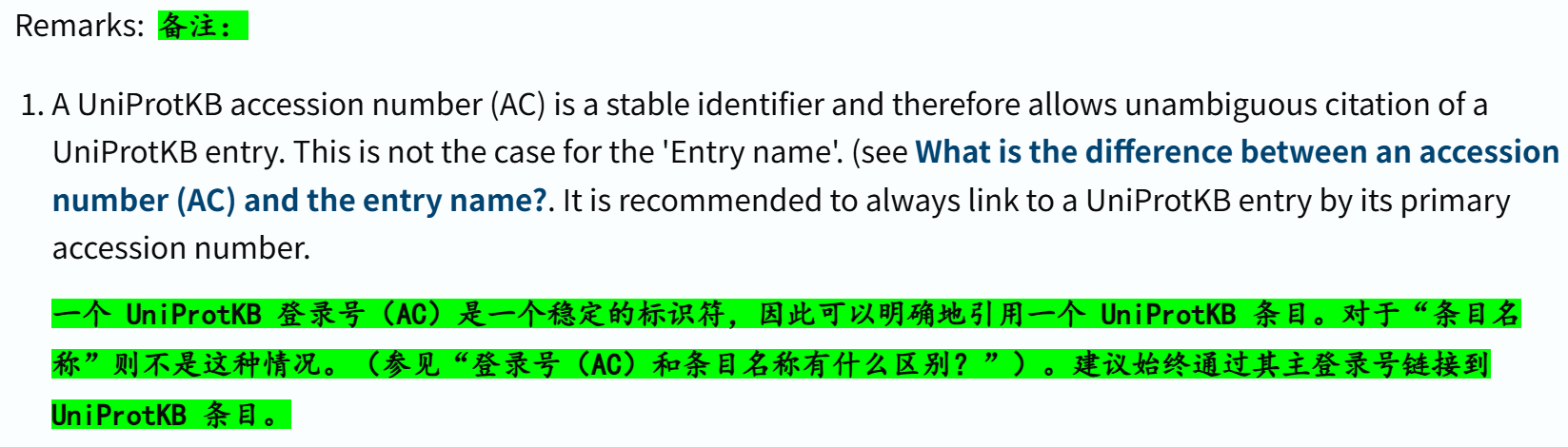 官方建议在访问数据条目链接时,尽量使用accession number(AC序列号),而不是entry name,
