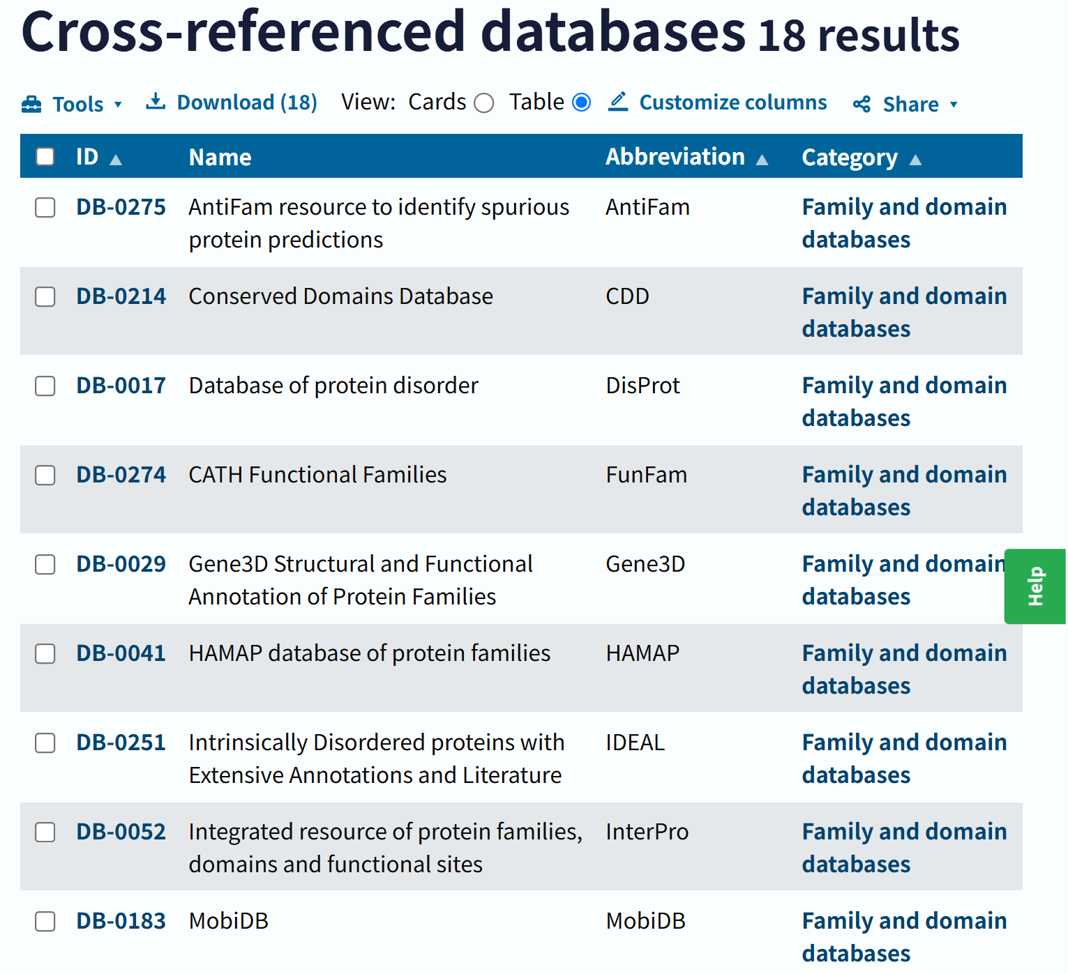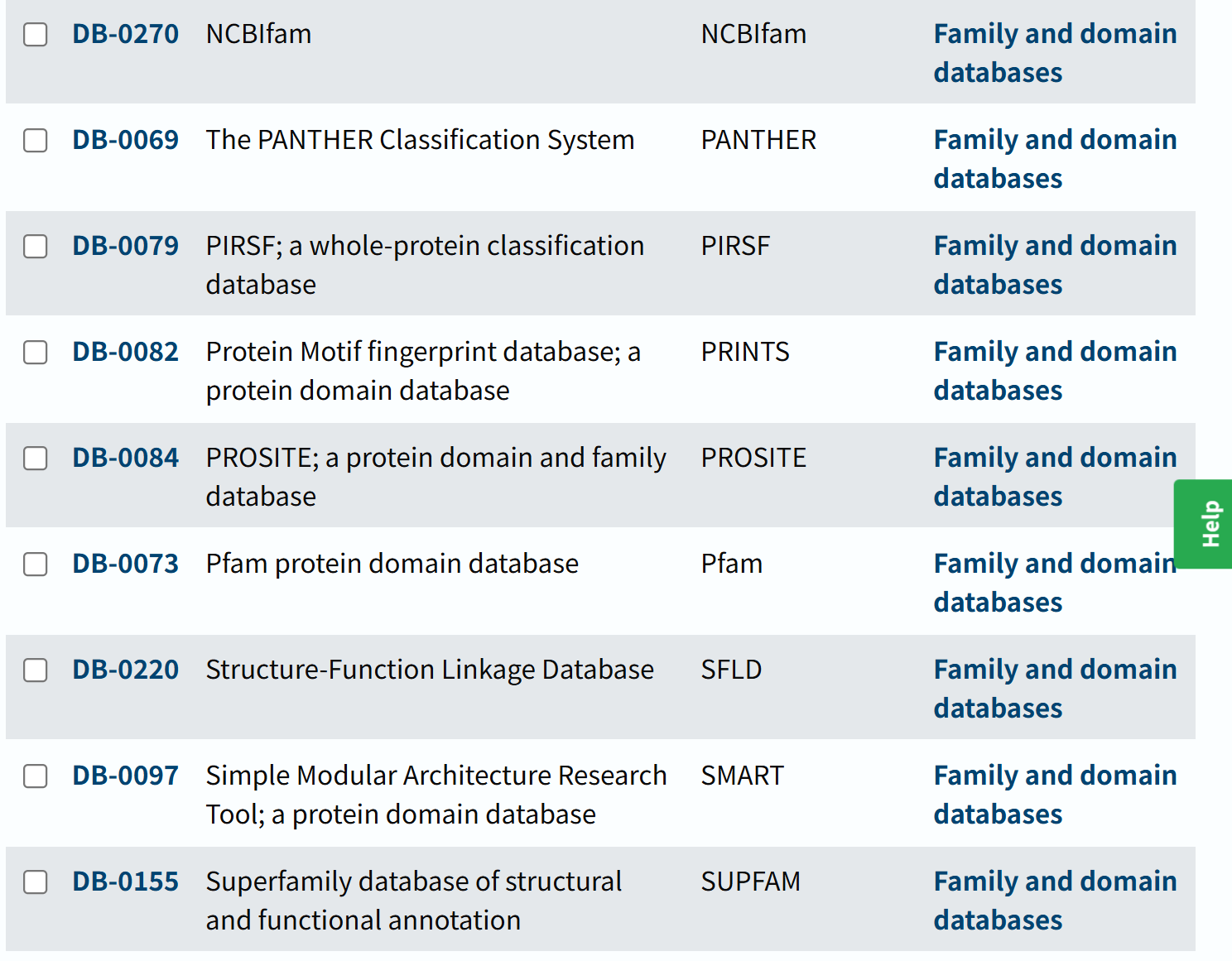 链接参考:https://www.uniprot.org/database?facets=category_exact%3AFamily%20and%20domain%20databases&query=%2A