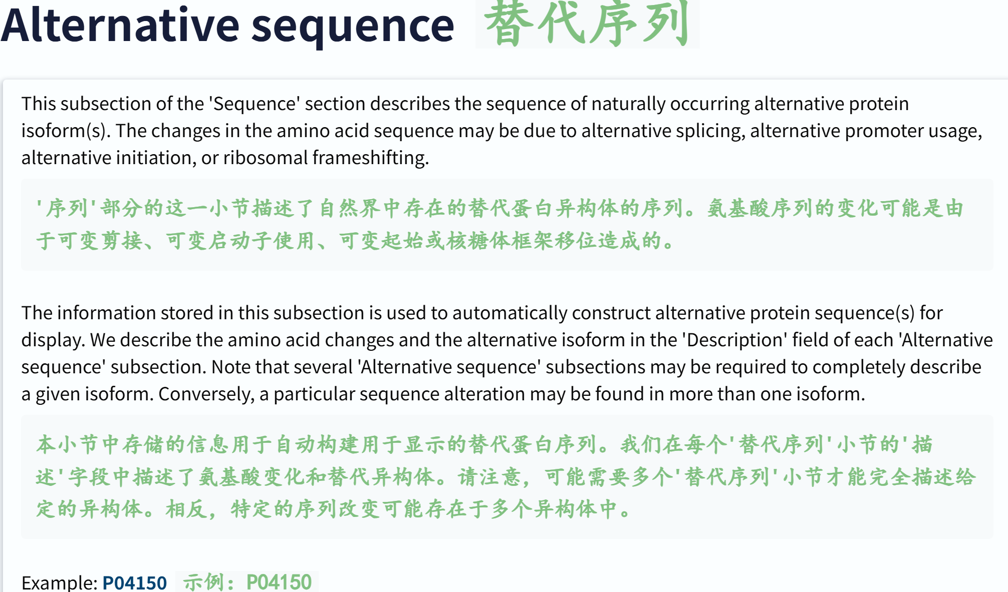 'Alternative sequence' # 异构体isoform