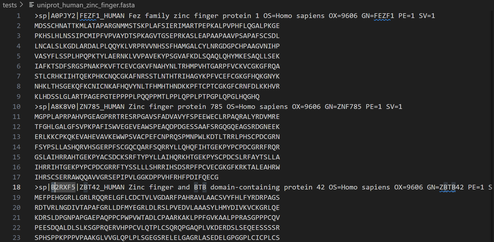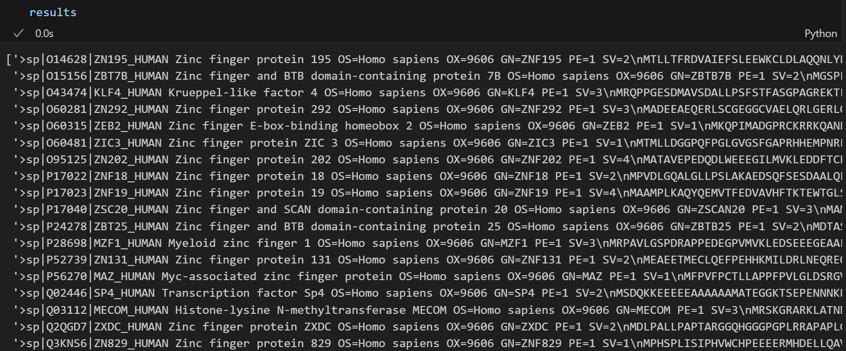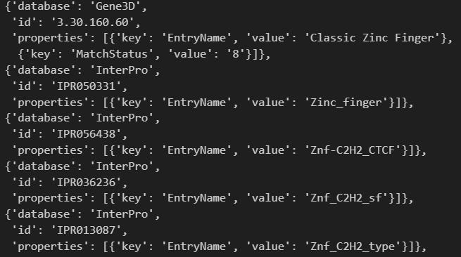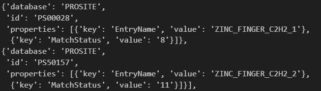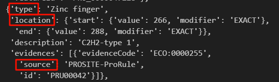 如果是结构域的话,我们可以只抓取其中domain、zinc finger之类的feature类型,稍微在上面的代码中改一改即可,比如说加一行判断,类似于: