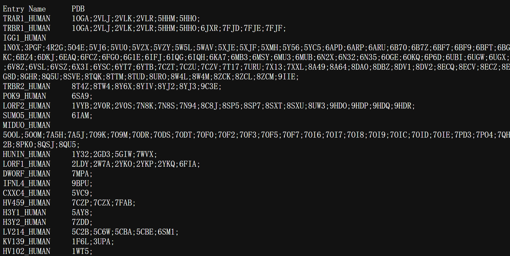 其实我就可以直接用统一地ID信息去提取这些蛋白质在这些数据库中的结构域domain数据。
