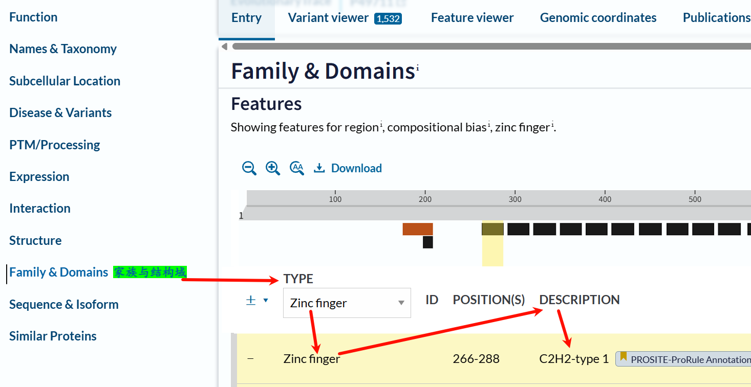 实际上我最后一个箭头所指的地方,其实就是PROSITE数据库注释,也就是uniprot此处的注释也是援引其他子数据库的。