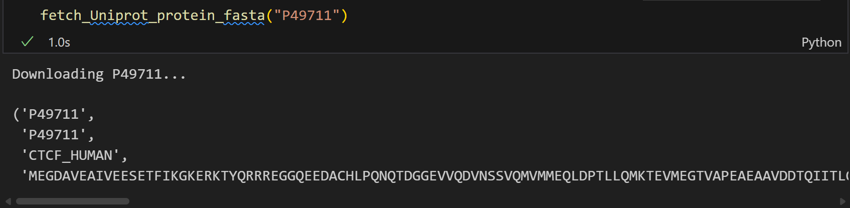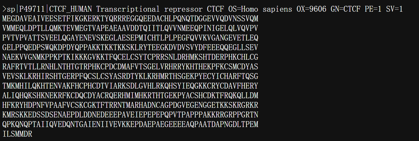 对于一条蛋白质序列,如果有名有姓,也就是有ID,比如说uniprot ID,比如说CTCF human蛋白,uniprot ID就是P49711,那么其实就可以到各种结构域数据库中直接搜索,因为现有的蛋白质其实大多数结构域、功能关系都已经非常明了,解析出来了,可以参考的数据库也非常多,本质就是爬虫。