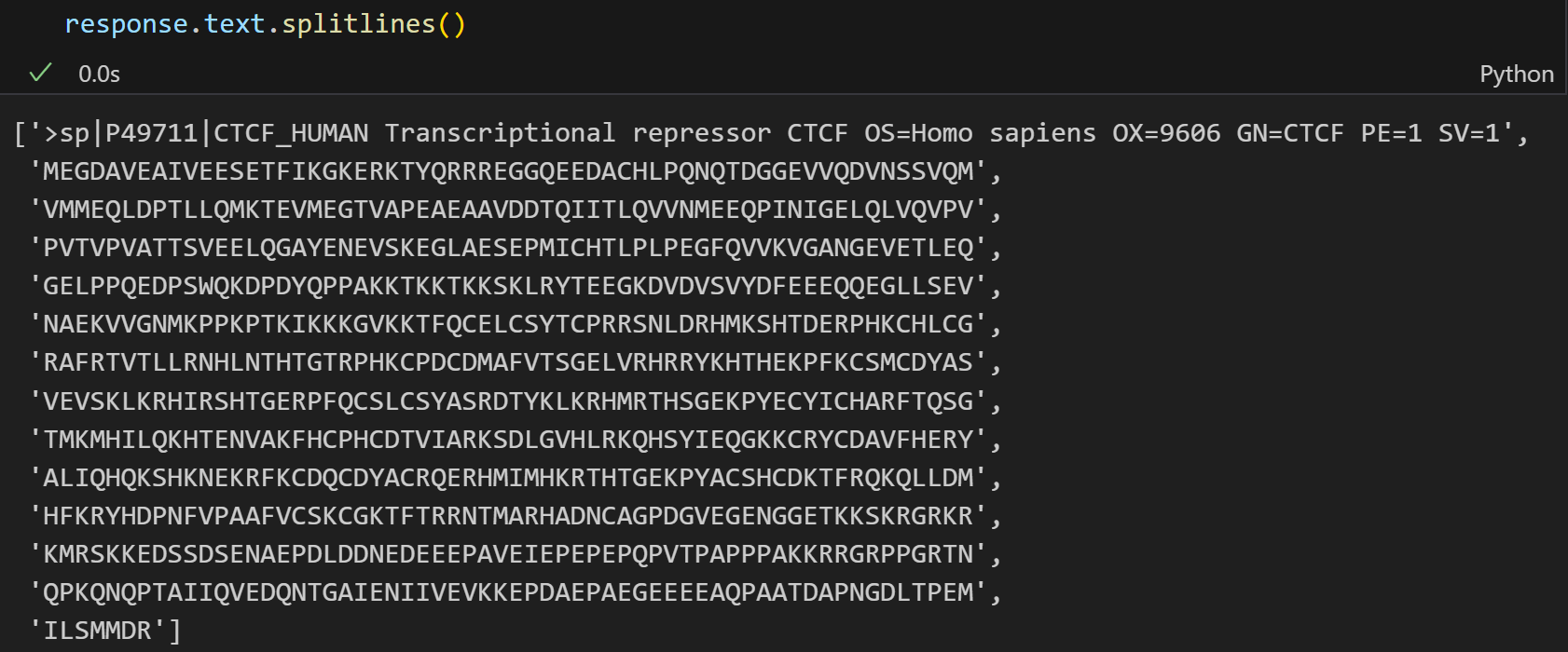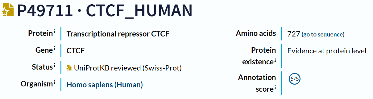 假设我们已经获取了某个蛋白质id,还是以CTCF为例子: