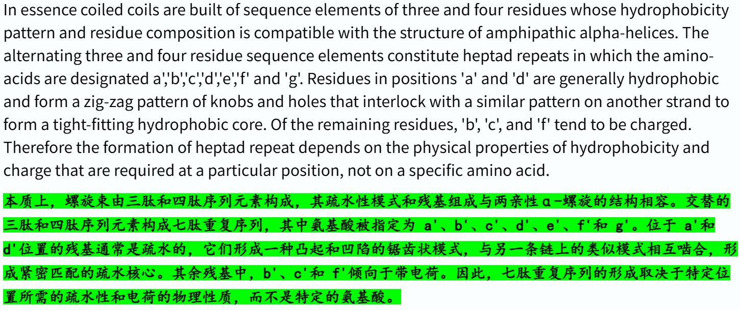 'Coiled coil' # 多条α-螺旋形成的超螺旋, 结构概念 ✅👍