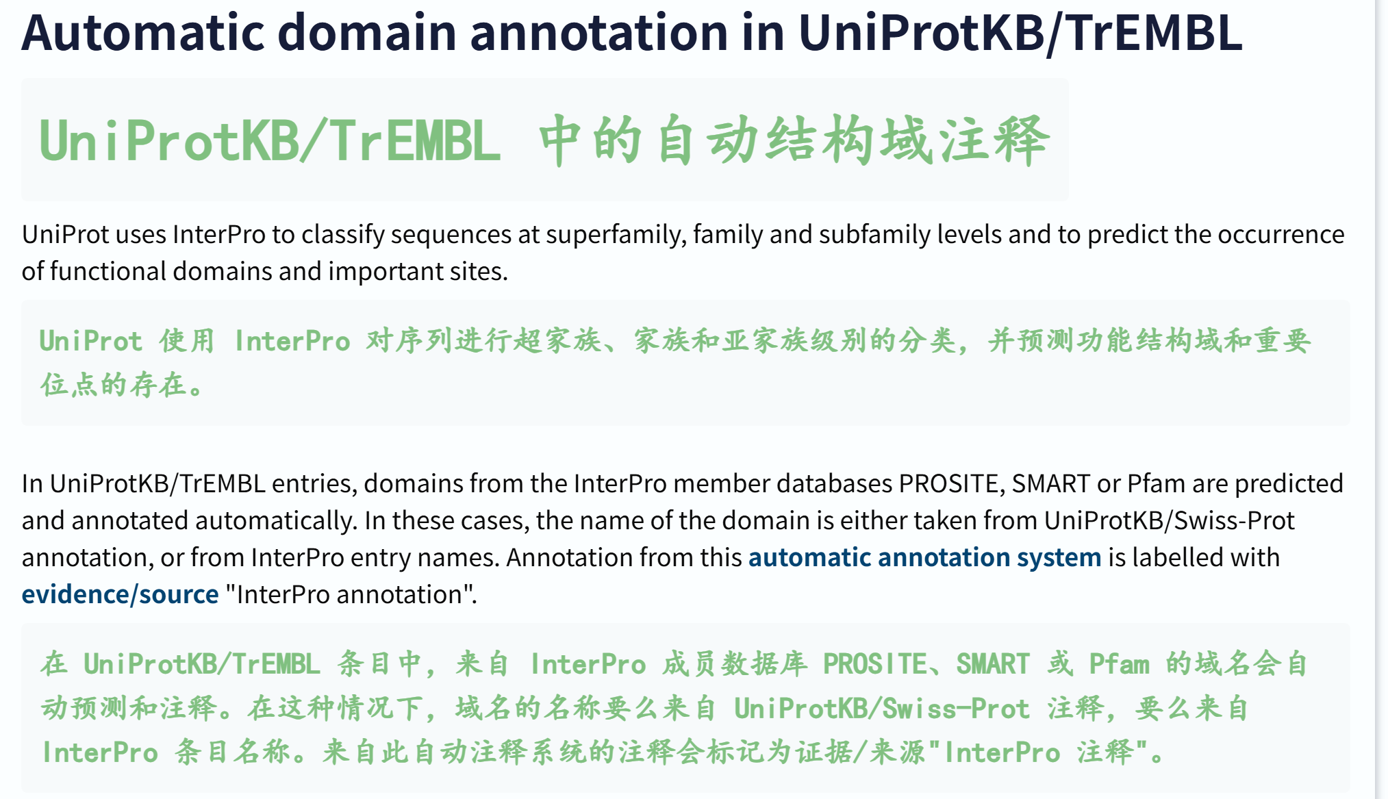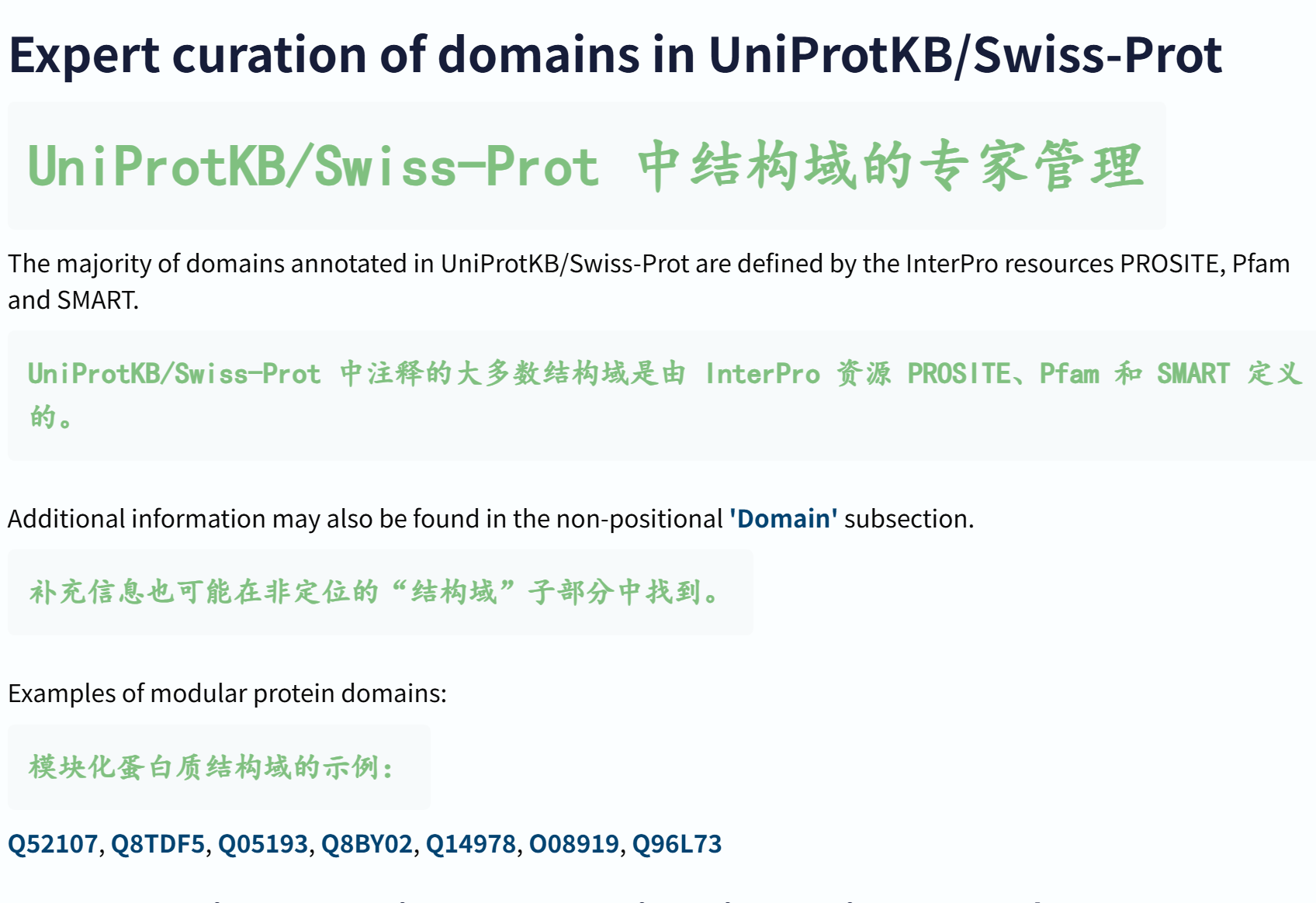 只不过每一个蛋白质信息条目中,会援引到结构域数据库的注释条目。