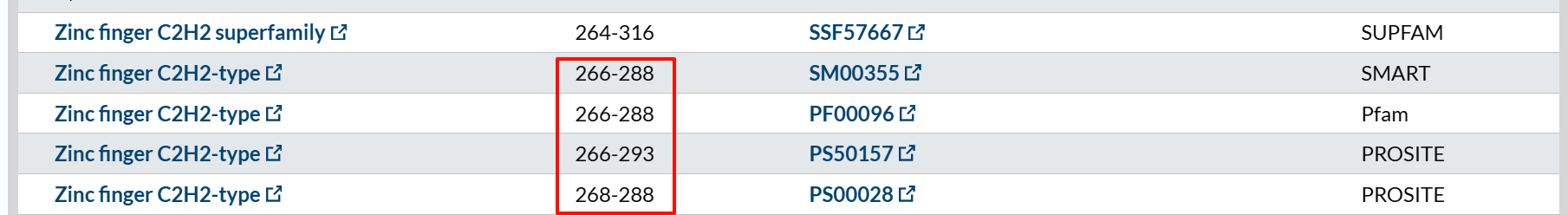 比如说CTCF human就有Zinc Finger Domain