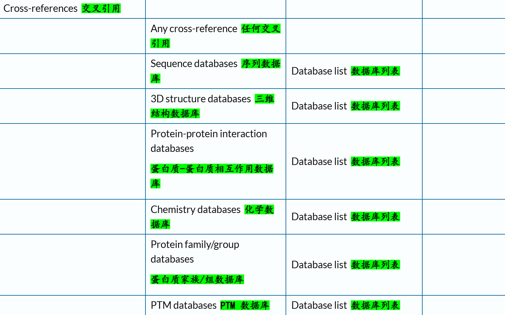 我们可以先来提纲挈领地查看一下Uniprot中所交叉参考的数据库信息: