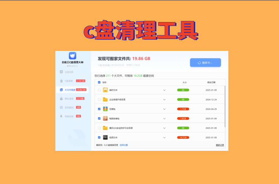 这些文件,大多数都是 C盘爆满 的“罪魁祸首”,而且安全删除不会影响系统运行,尤其是用 C盘清理工具 时,它会自动帮你识别这些文件。