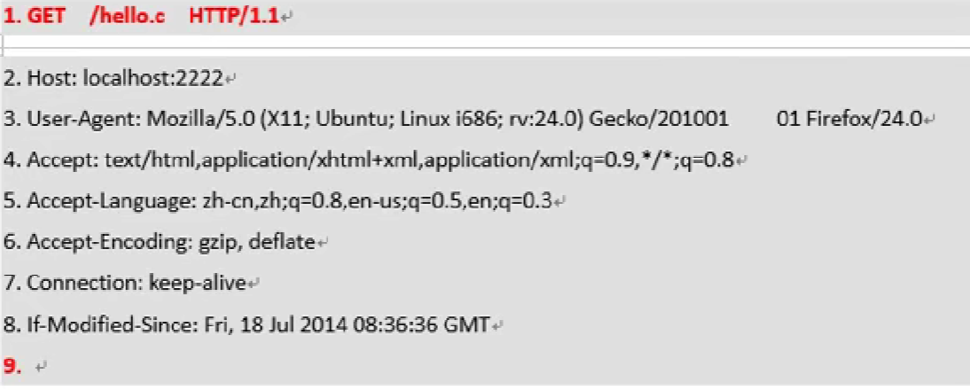 浏览器-->发给-->服务器。主旨内容包含4部分:请求行:说明请求类型,要访问的资源,以及使用的http版本。请求头:说明服务器要使用的附加信息。空行:必须!,即使没有请求数据。(用来区分头和数据)请求数据:也叫主体,可以添加任意的其他数据。以下是浏览器发送给服务器的http协议头内容举例,注意:9行的空行(\r\n)也是协议头的一部分:
