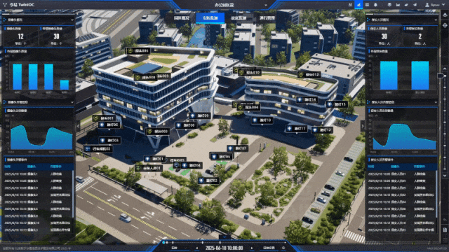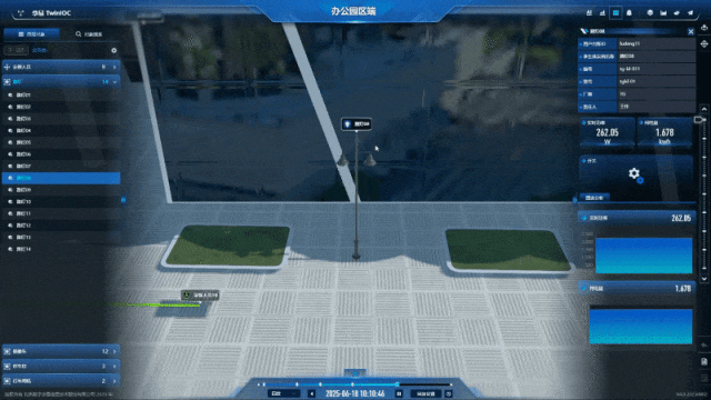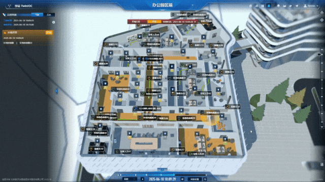 在两套办公园区数字孪生应用发布,同一园区的各项数据在两套应用中实现了实时同步。当园区内某台设备的运行参数发生变化时,无论是在端渲染应用还是流渲染应用中,都能即时显示最新数据;当有告警事件发生时,两套应用会同时触发告警提示,并精准定位到事发位置,展示详细的告警信息。这种数据的完全共享,确保了管理人员在不同场景下获取到的信息始终保持一致,避免了因信息不对称而导致的决策失误。
